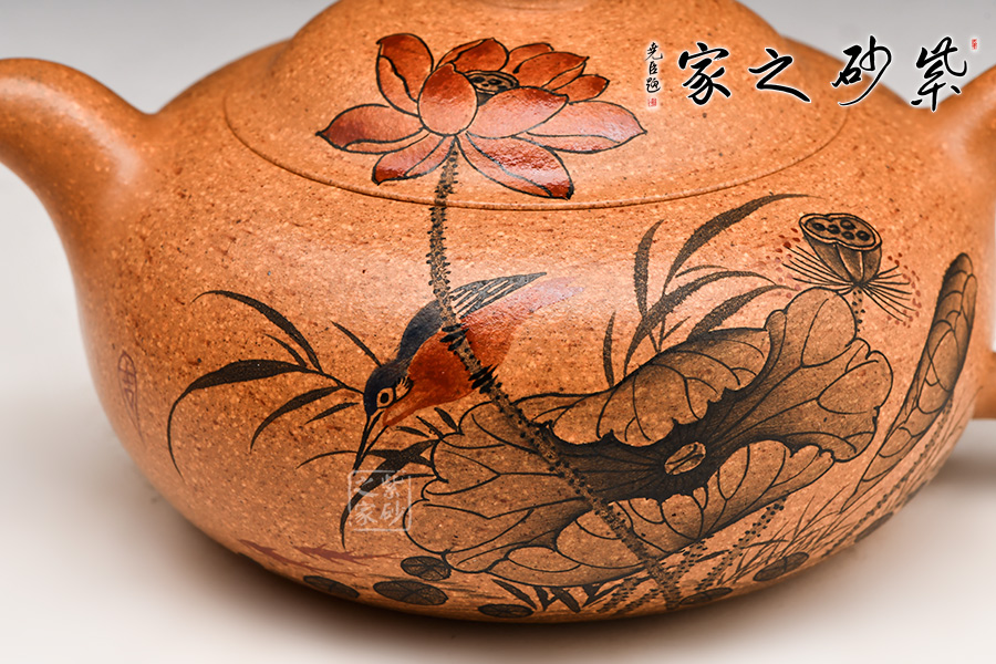 壺型飽滿,線條流暢,暗接嘴把,珠鈕挺立,此壺經(jīng)久耐看,造型永不過(guò)時(shí)!壺身彩繪別致,從壺體延續(xù)到壺蓋,精致無(wú)比!
