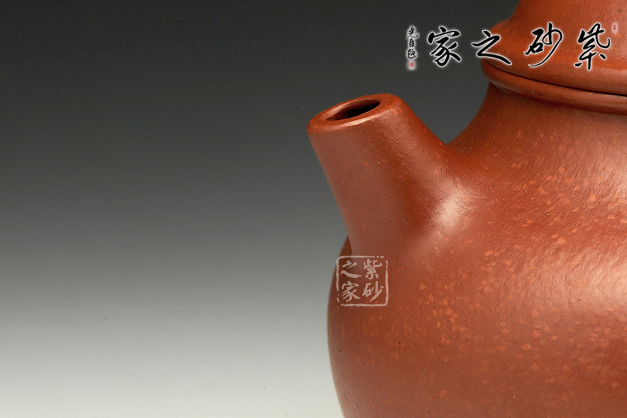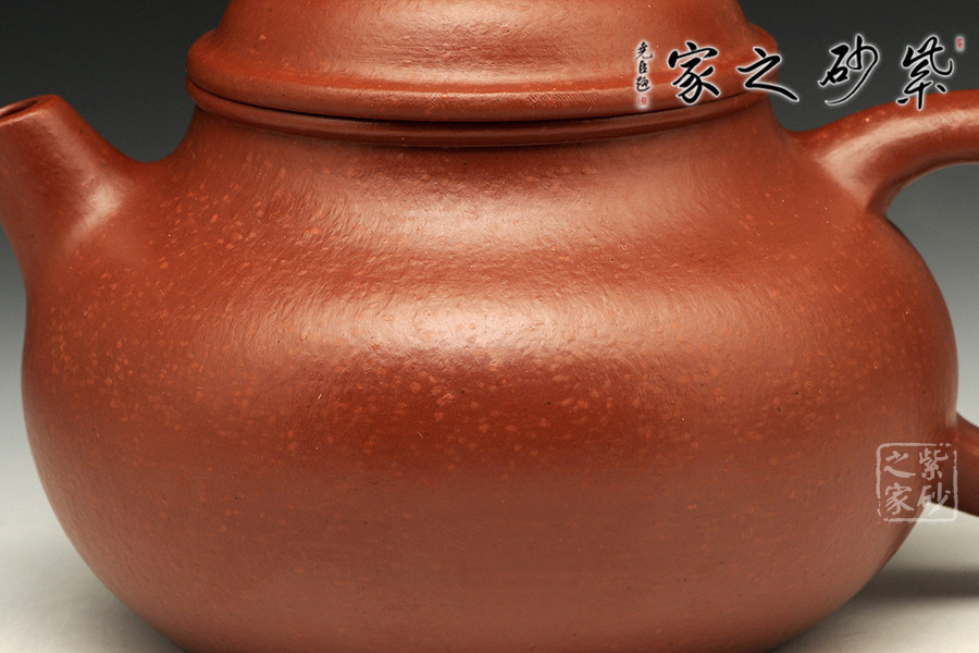 魚籽砂泥料顆粒明顯,是在上世紀(jì)90年代練成的泥,選用原礦大紅袍朱泥,30目砂陳腐了二十多年,紅底映紅砂,是泥料中的極品。