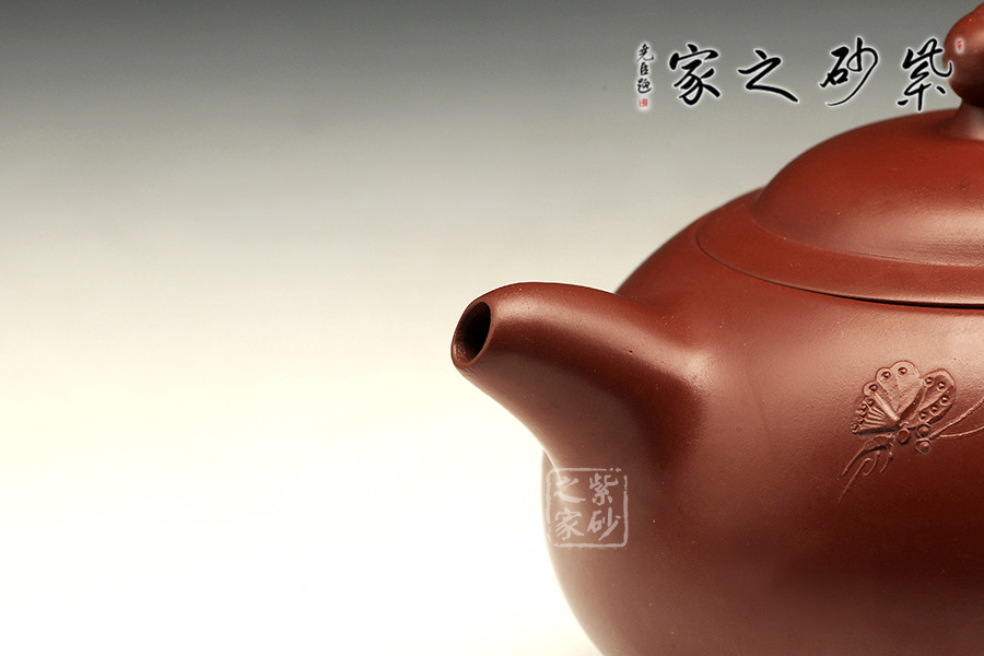 特點(diǎn):質(zhì)感綿密、緊實(shí)細(xì)緻,持之扎實(shí)沉重、紅潤(rùn)豔麗,泥中極品,無(wú)以倫比;泥胚含少許原礦顆粒,沖淋熱水后色變極大,呈紅中帶紫,養(yǎng)壺易現(xiàn)“包漿”之美。