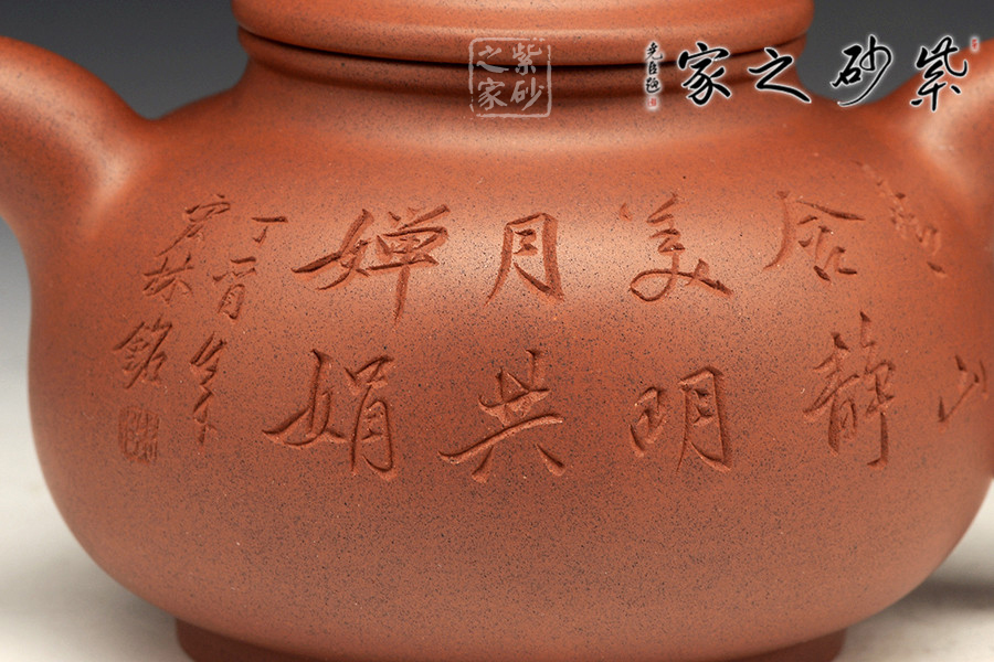 光貨離不開裝飾。俗話說“壺隨字貴,字隨壺傳”:光壺不刻字,就是一把光壺;壺上面刻了大師、名人的字,一把壺的含金量就高了,收藏價值就更高,升值潛力就更大。王福君與中國工藝美術(shù)大師譚泉海合作最多,其次是徐安碧、鮑志強(qiáng)、毛國強(qiáng)(均為中國工藝美術(shù)大師、中國陶瓷藝術(shù)大師)。