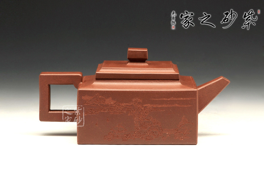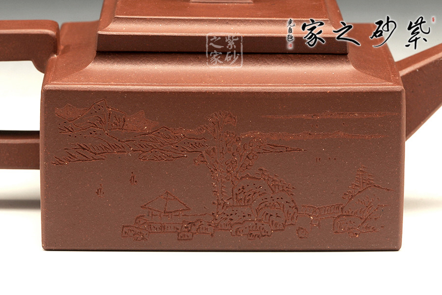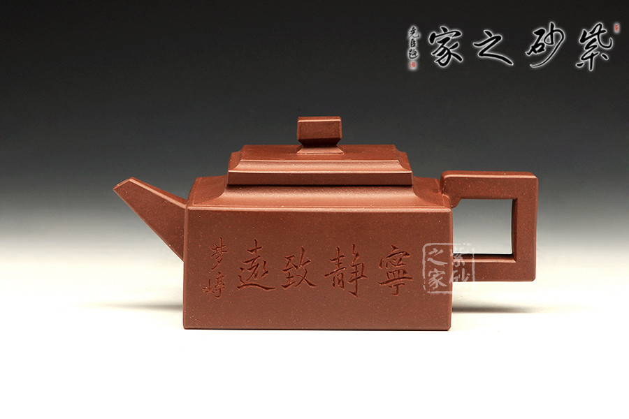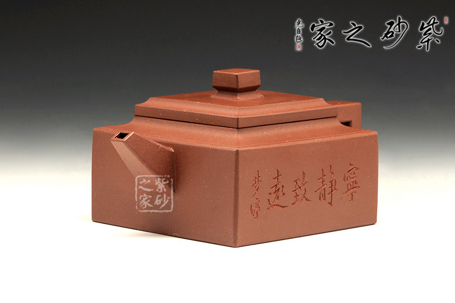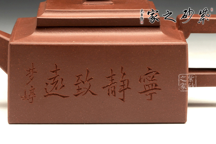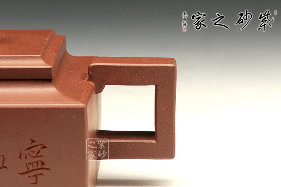 此壺是經(jīng)典的紫砂方器。壺身呈現(xiàn)長(zhǎng)方形,規(guī)整大氣。精選原礦底槽青泥料制成,泥質(zhì)醇厚,色澤古穆,觸手生溫。方的元素在此壺中運(yùn)用得大氣磅礴,層次感非常豐富??傮w來(lái)說(shuō),此壺的氣韻就非常高雅。