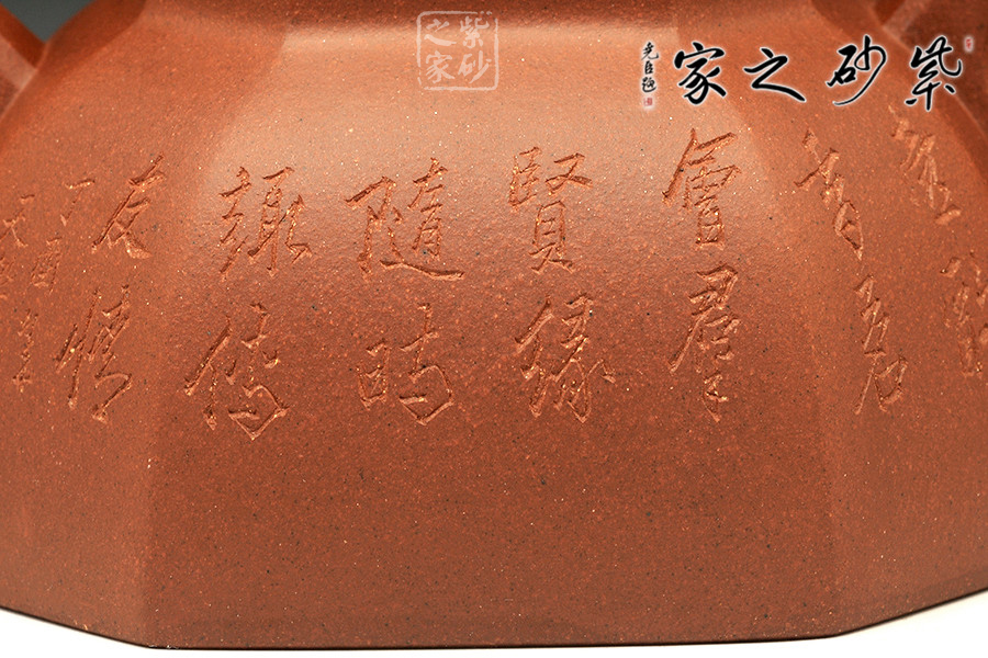 光貨離不開裝飾。俗話說“壺隨字貴,字隨壺傳”:光壺不刻字,就是一把光壺;壺上面刻了大師、名人的字,一把壺的含金量就高了,收藏價(jià)值就更高,升值潛力就更大。王福君與中國工藝美術(shù)大師譚泉海合作最多,其次是徐安碧、鮑志強(qiáng)、毛國強(qiáng)(均為中國工藝美術(shù)大師、中國陶瓷藝術(shù)大師)。
