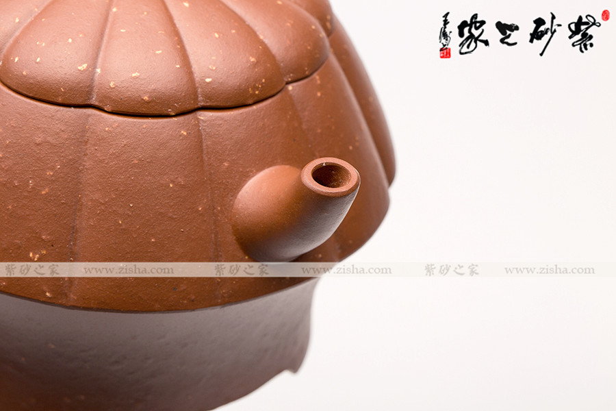 壺嘴短促尖銳,曲中有直,也是技術(shù)爐火純青;壺把由上到下從細(xì)變粗,壺鈕小巧突出,似半顆圓珠立于壺蓋之上,拿捏方便,造型也力求變化,上半部分筋紋線條是最大特色,陰陽間隔,線條清晰分明,更添美感。下半部分似一個(gè)小火爐,光素大方。,整款壺古樸、儒雅,氣韻不俗。