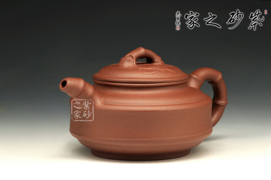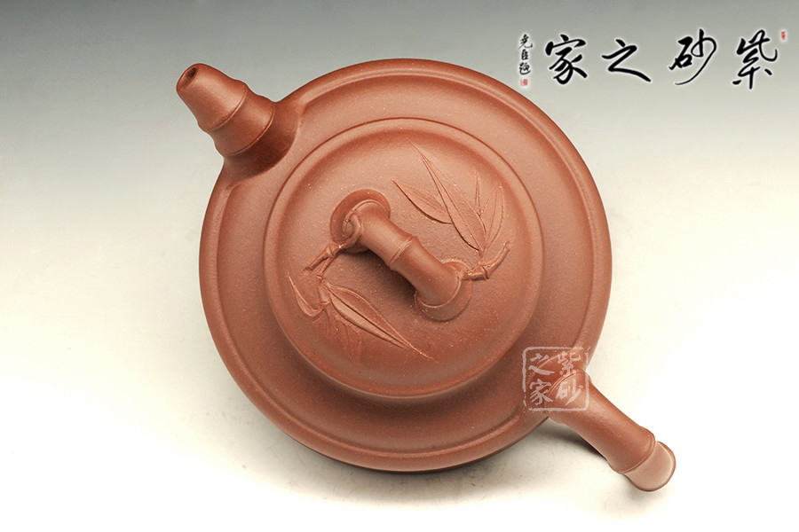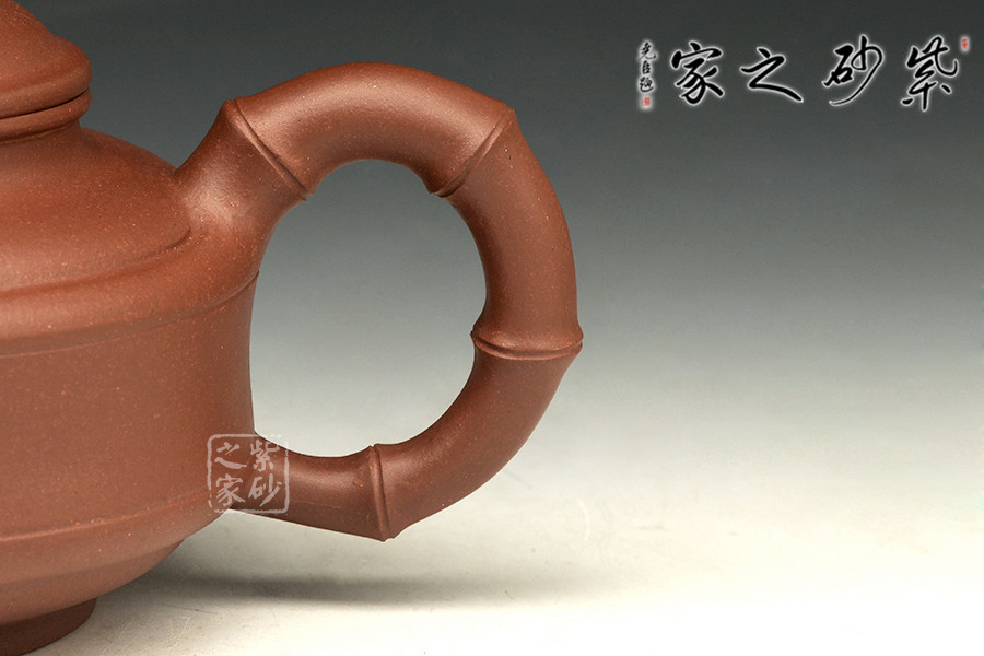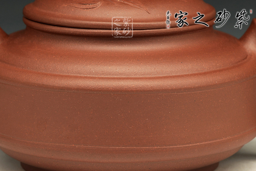此壺為傳統(tǒng)壺型,傳承經(jīng)典,端莊雅致,不失渾厚樸實,質(zhì)拙中顯高意,值得擁有。的流把竹節(jié)造型,一彎嘴三節(jié)竹節(jié)裝飾而成,弧鈕散開在略微鼓起的壺蓋之上,蓋沿明顯厚于口沿,形成強勁的壓蓋之勢,耳形提把為三節(jié)竹節(jié)裝飾,兩條清晰的線條從壺腹中間穿過,似是一條寬闊的腰帶橫亙其中;加底,與壺口口徑一致,整款壺竹韻清疏,竹葉自壺鈕清淺胥出,貼于壺蓋之上,再也無其他裝飾,韻味不失,毫無矯飾。