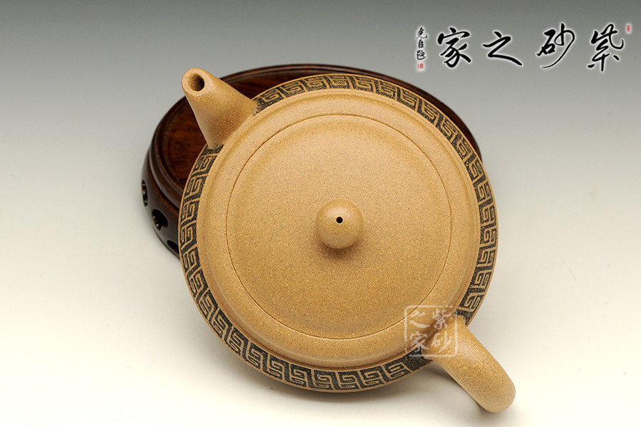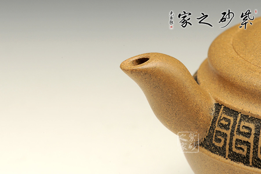 流自壺腹胥伸自然,把高挑圓潤(rùn)下留垂耳,與流對(duì)應(yīng)稱勢(shì)。中置壺身飽滿略豐將全壺提攜神韻,在變化中求統(tǒng)一,使得此壺更加清雅自然,把玩不已。加之刻繪的裝飾,更體現(xiàn)了文化的內(nèi)涵訴求。