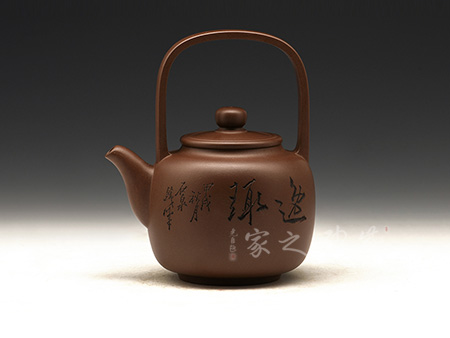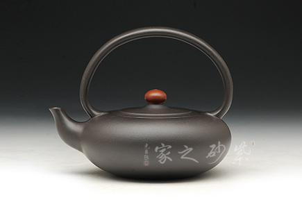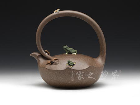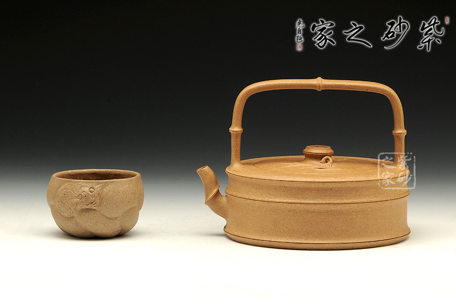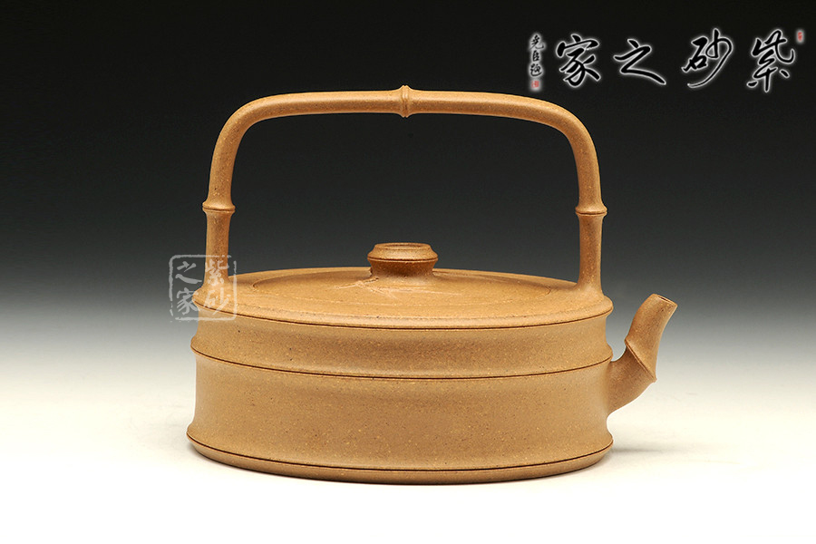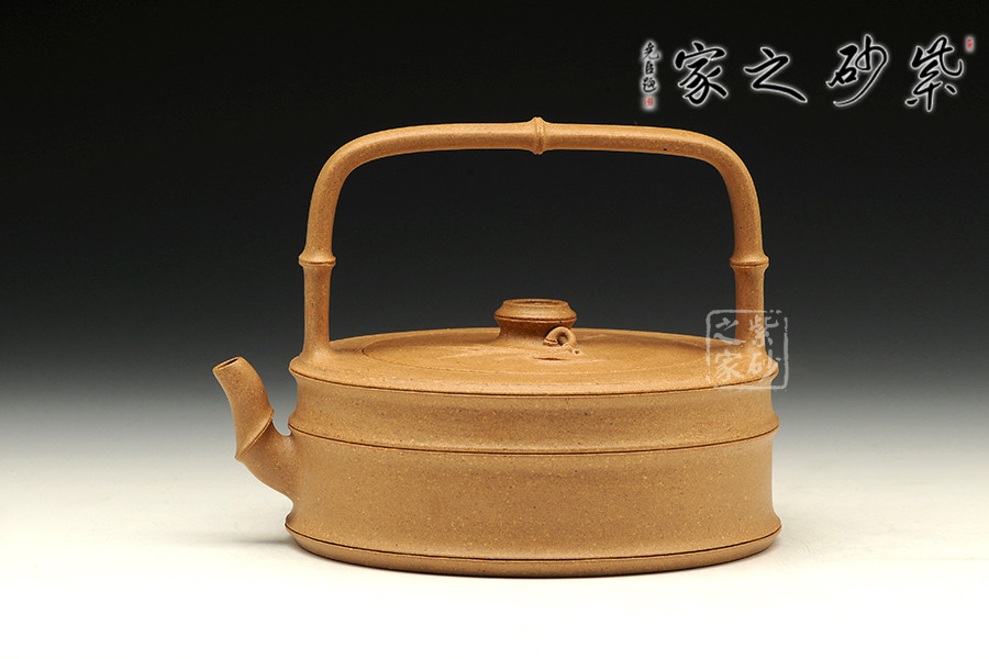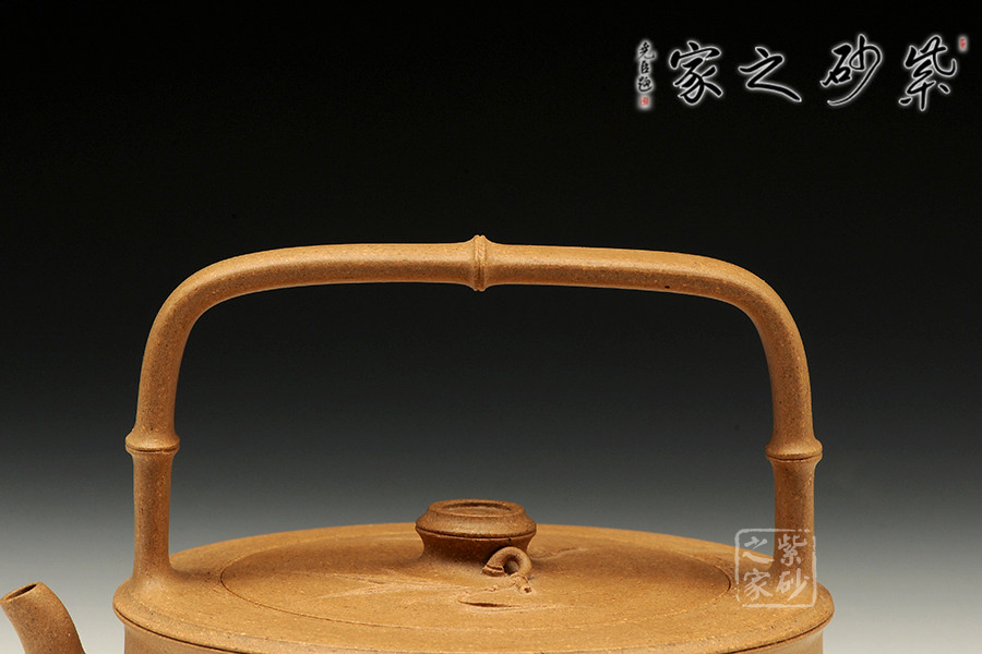 竹子作為傳統(tǒng)的紫砂元素,從來給人以清新自然的感受。提梁則是經(jīng)典的田園造型,所以竹子和提梁結(jié)合,必然有濃濃的超然情懷。此壺造型蒼勁有力,線條簡(jiǎn)練大方,壺形挺拔.大度清秀,不媚不俗,竹的君子風(fēng)度得以盡情的顯現(xiàn)和表露