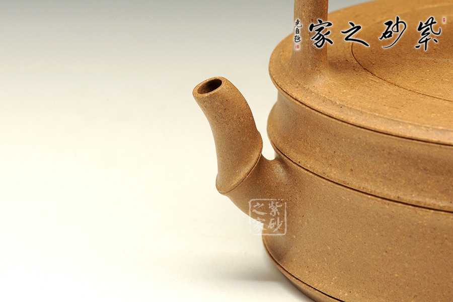 泥性:感甜嫩綿密,質(zhì)堅(jiān)而溫潤(rùn),呈近田黃色調(diào),為江蘇宜興趙莊山系朱泥礦~黃石黃之共生礦,經(jīng)挑揀練製而成,因含鐵量只達(dá)6%左右,致陶之后呈“金田黃色”。