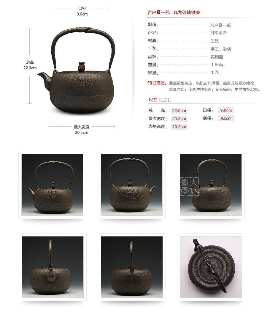 巖戶鑄造所 丸龍砂鑄鐵壺 [ 編號:45688 ]