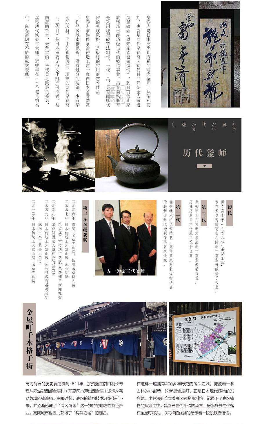 畠春齋家原本是住在河內(nèi)國丹南地區(qū)的鑄物師。1611年,高岡領主前田利長從河內(nèi)國邀請了包括畠春齋等7位鑄物師來到高岡市的金屋町。