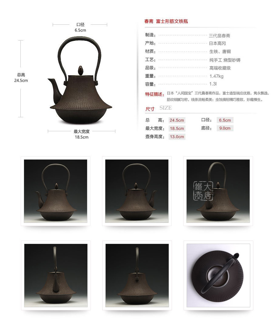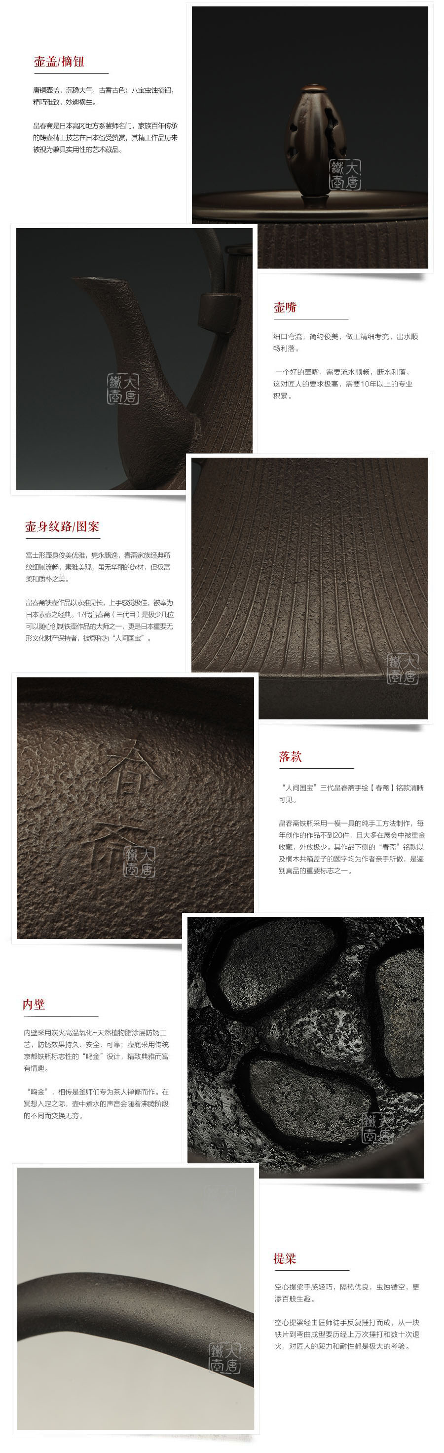春齋的鐵瓶使用的都是1模1具的方法制作的純手工作品。與一般的量產(chǎn)品不同,通常制作這樣一個純手工作品,需要花費數(shù)月時間才能完成。因此在某種程度上可以說春齋的鐵瓶是兼具實用性的藝術品。