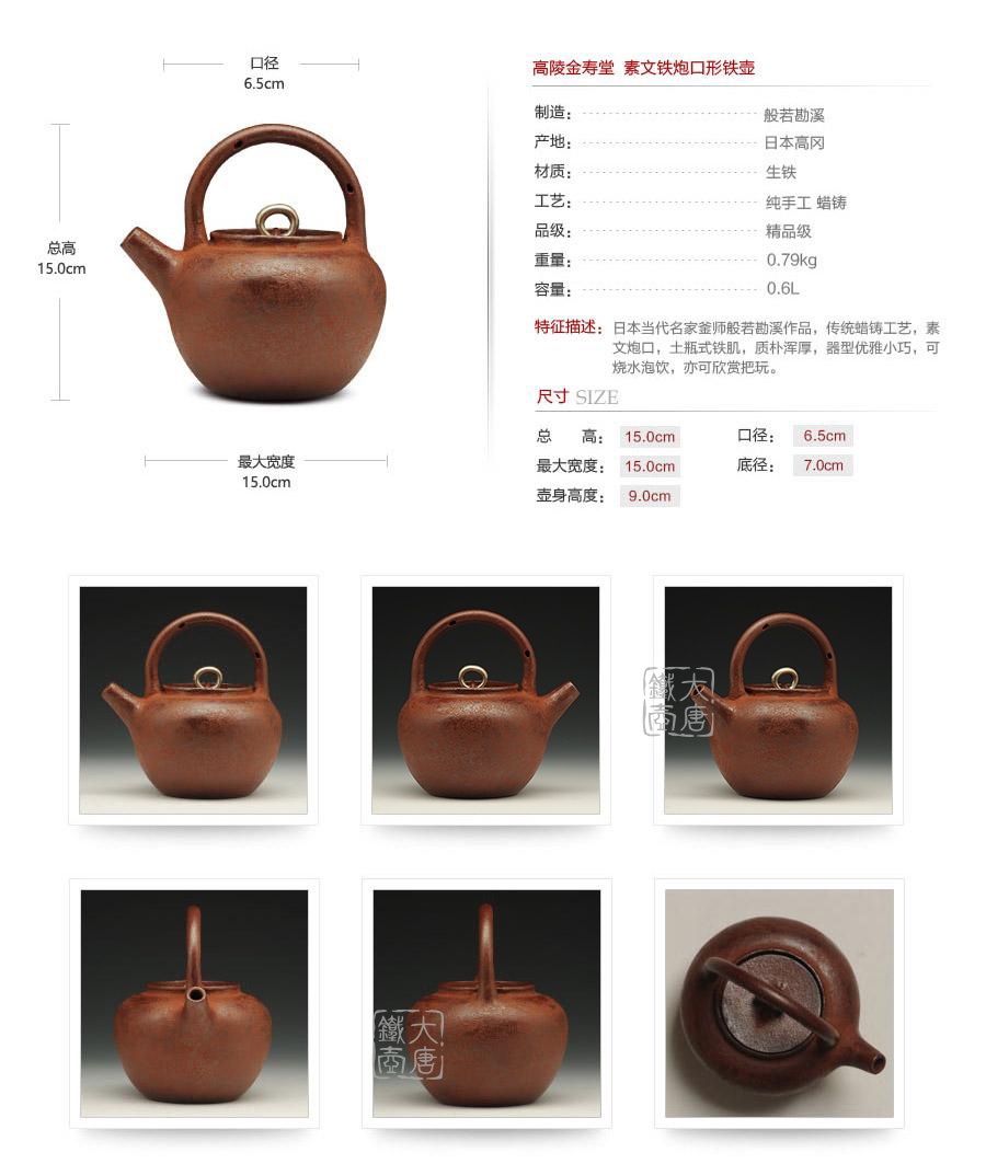 般若作 素文炮口形鐵壺 [ 編號(hào):45713 ]