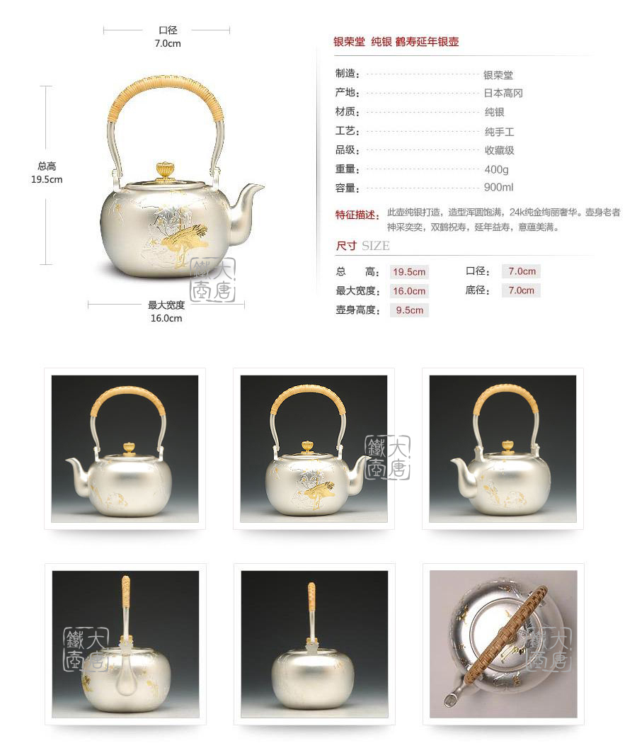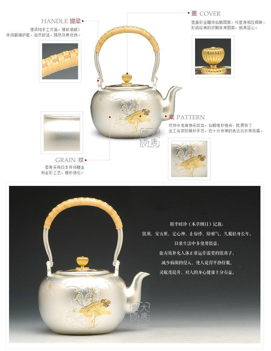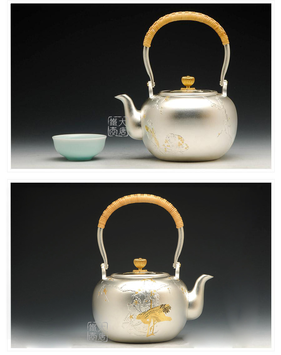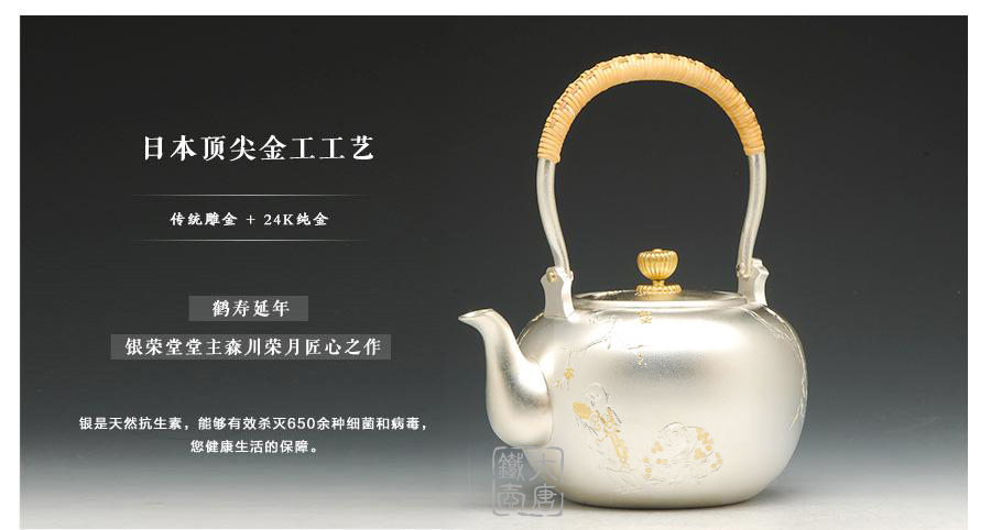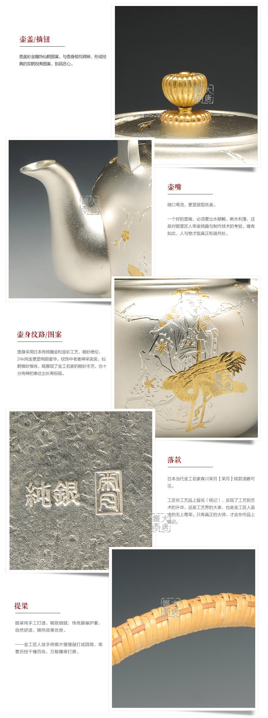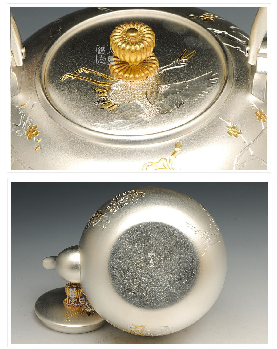 銀榮堂 鶴與壽老 雕金銀壺 [ 編號:45748 ]
