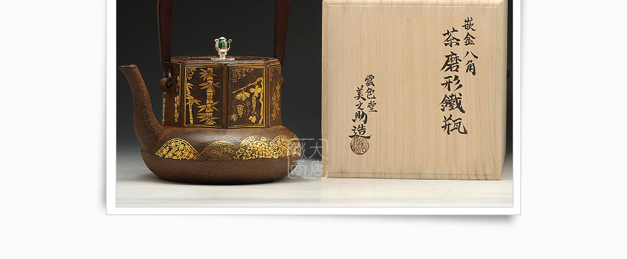 云色堂 滿工嵌金八角茶磨形鐵壺 [ 編號:45784 ]