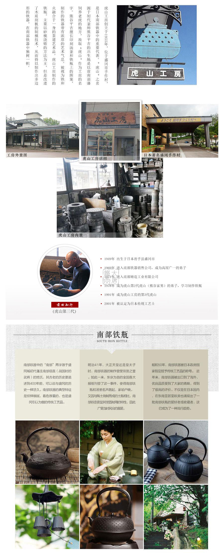1978年 成為虎山第2代虎山(熊谷富男)的弟子,學(xué)習(xí)制作鐵瓶