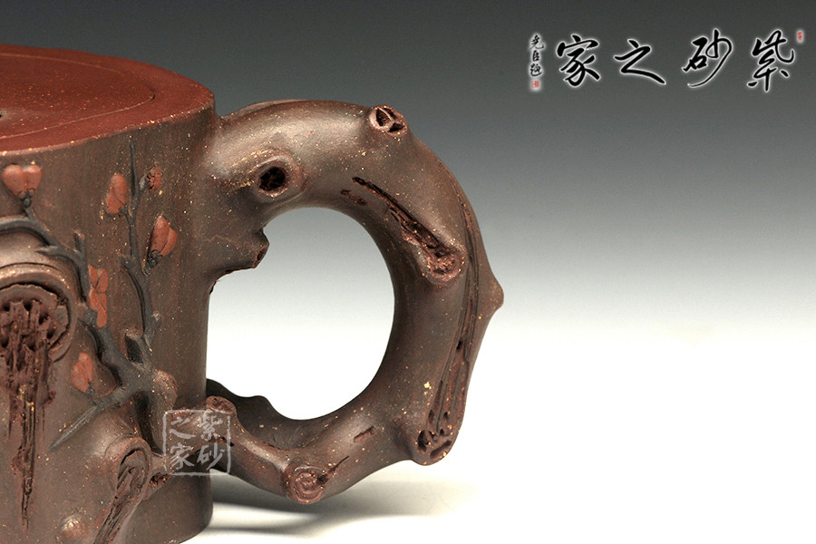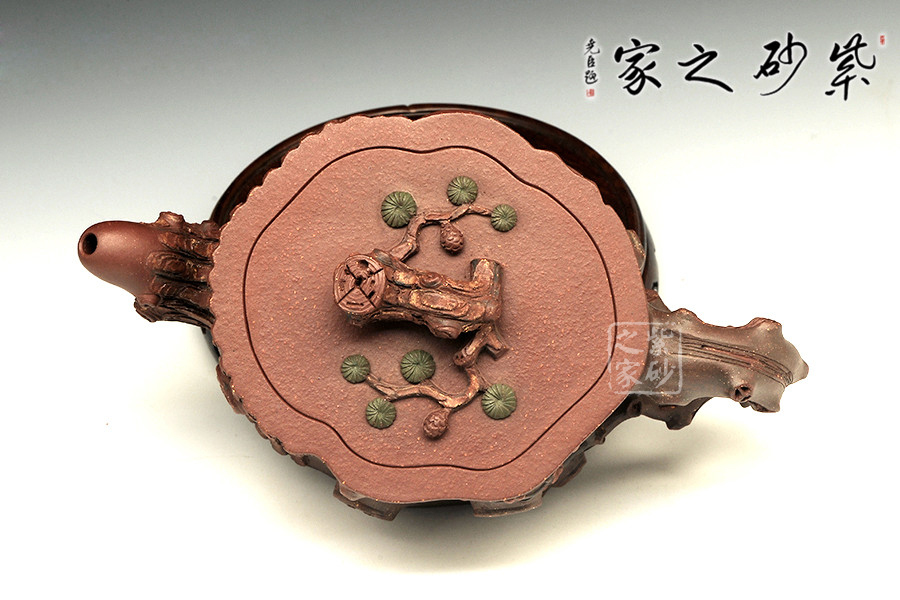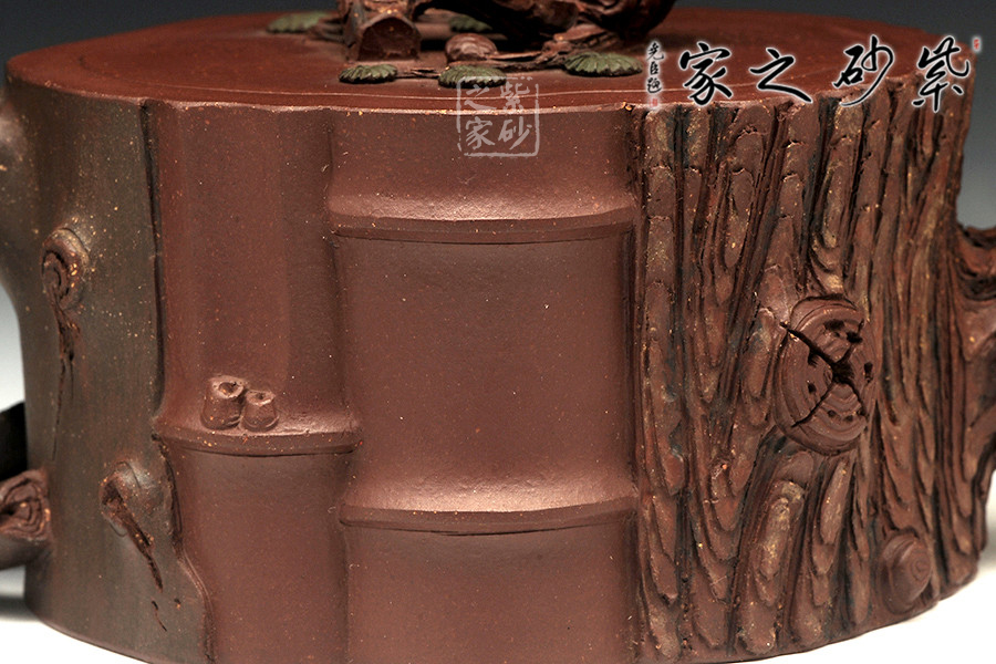 壺把為梅樁,壺身竹段共融,壺嘴為松枝;松皮質(zhì)、松針、松果的滄桑老道,梅枝的高雅精致,竹段質(zhì)樸清幽,無一不表現(xiàn)得淋漓盡致,壺身三友相互融合,以最樸實的形態(tài)展現(xiàn)最高潔的精神,壺中上品,不收藏就可惜了!