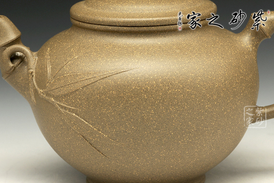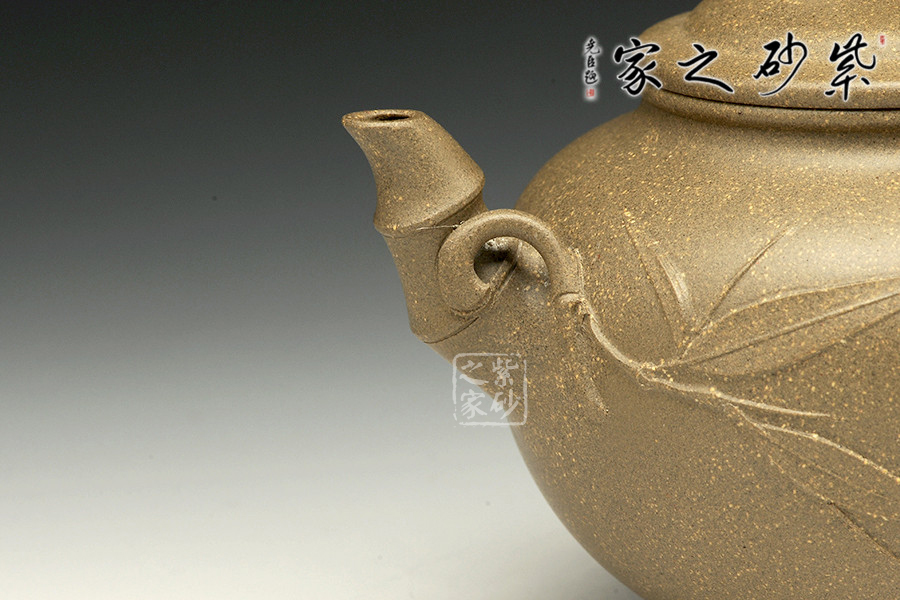 此壺整體飽滿大方,渾圓飽滿,線條流暢,在傳統(tǒng)的基礎(chǔ)上略有改進(jìn),所制線條線條圓融有力,簡潔明快,沉穩(wěn)而不凝滯,作品敦厚飽滿,曲張有致,古樸素雅,氣度渾樸大方。壺流、壺把以及壺鈕竹節(jié)淡然節(jié)節(jié)高,貼合自然,制作細(xì)膩,好似一種古韻,展現(xiàn)三友的君子淡然之風(fēng)。