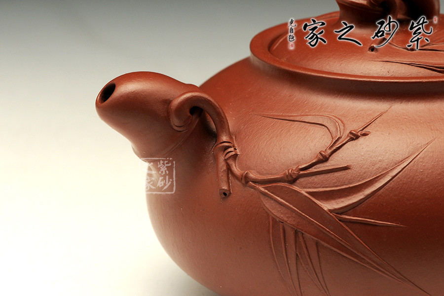 特點(diǎn):質(zhì)感綿密、緊實(shí)細(xì)緻,持之扎實(shí)沉重、紅潤(rùn)豔麗,泥中極品,無(wú)以倫比;泥胚含少許原礦顆粒,沖淋熱水后色變極大,呈紅中帶紫,養(yǎng)壺易現(xiàn)“包漿”之美。