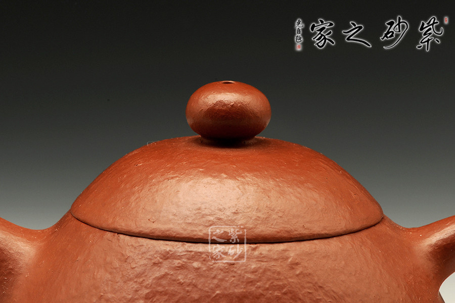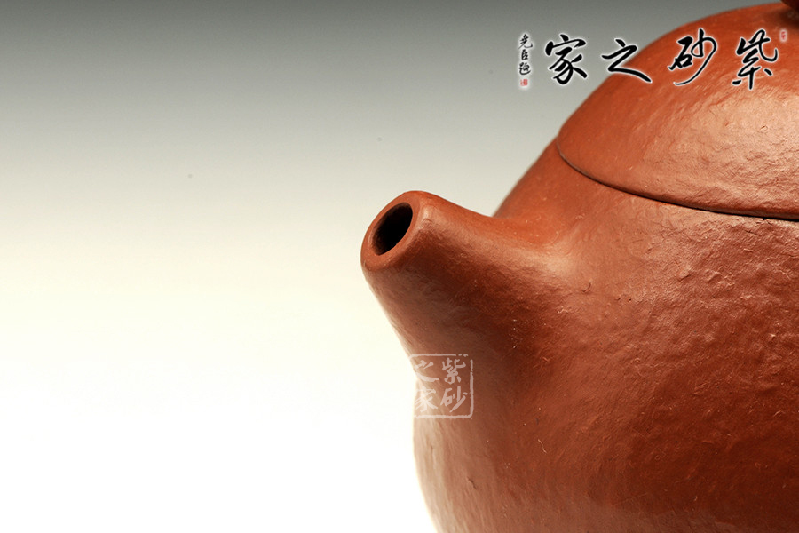 該文旦壺由精簡的線面構(gòu)成,流線豐滿光潤,身蓋相連呈截蓋,鈕為扁圓乳頭狀,底向里收斂,呈一捺底狀,嘴短而粗大,把圈向上傾斜,即為倒把壺,整器均采用暗接處理,甚見壺藝家功力。