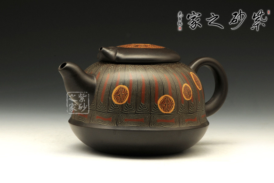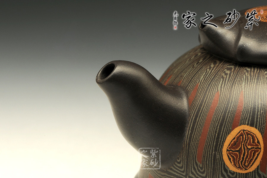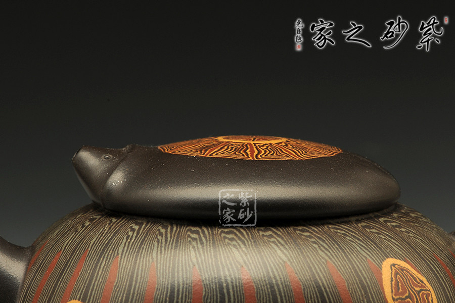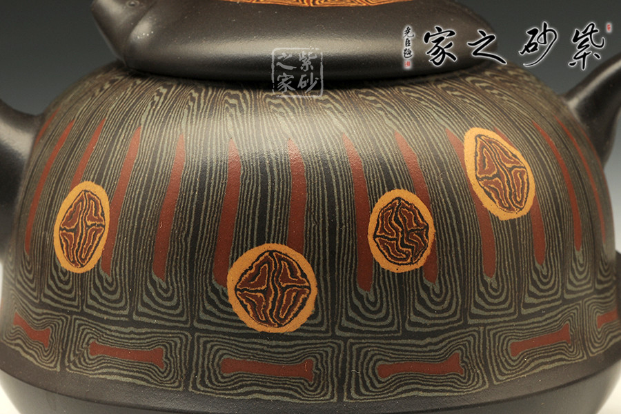 壺把是尾巴,粗細漸變且上翹連到壺身,美觀自然,壺蓋平蓋壓密,壺鈕為龜,富貴吉祥承載美好愿景。