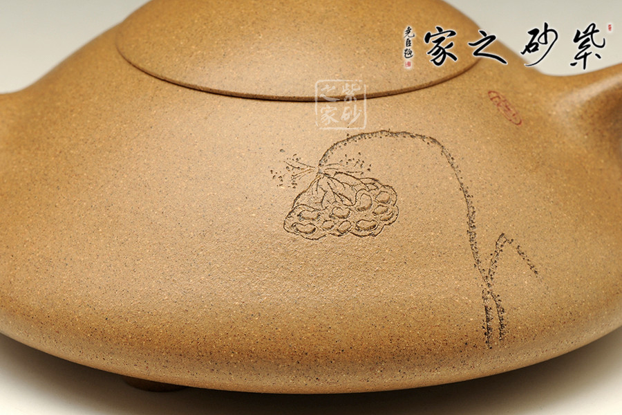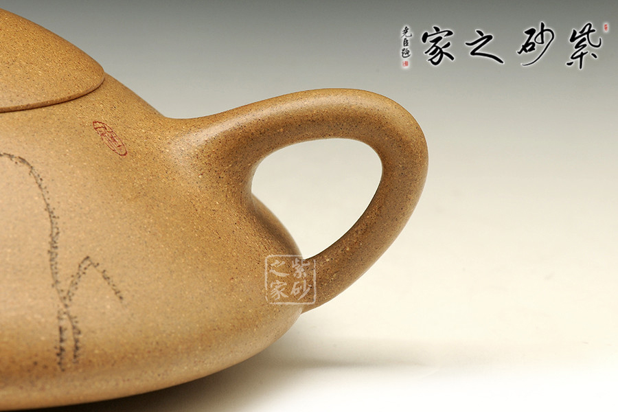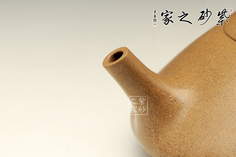 泥性:感甜嫩綿密,質(zhì)堅而溫潤,呈近田黃色調(diào),為江蘇宜興趙莊山系朱泥礦~黃石黃之共生礦,經(jīng)挑揀練製而成,因含鐵量只達6%左右,致陶之后呈“金田黃色”。