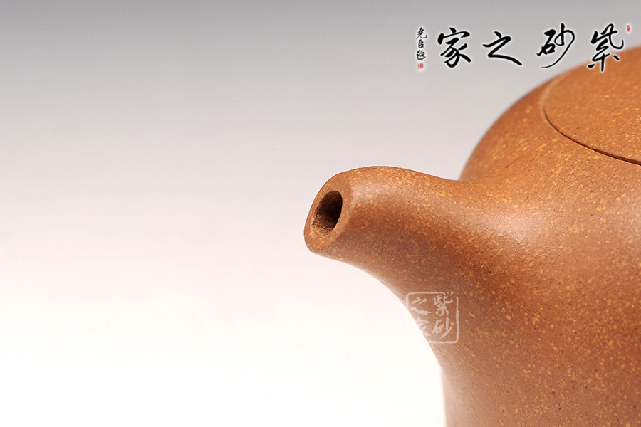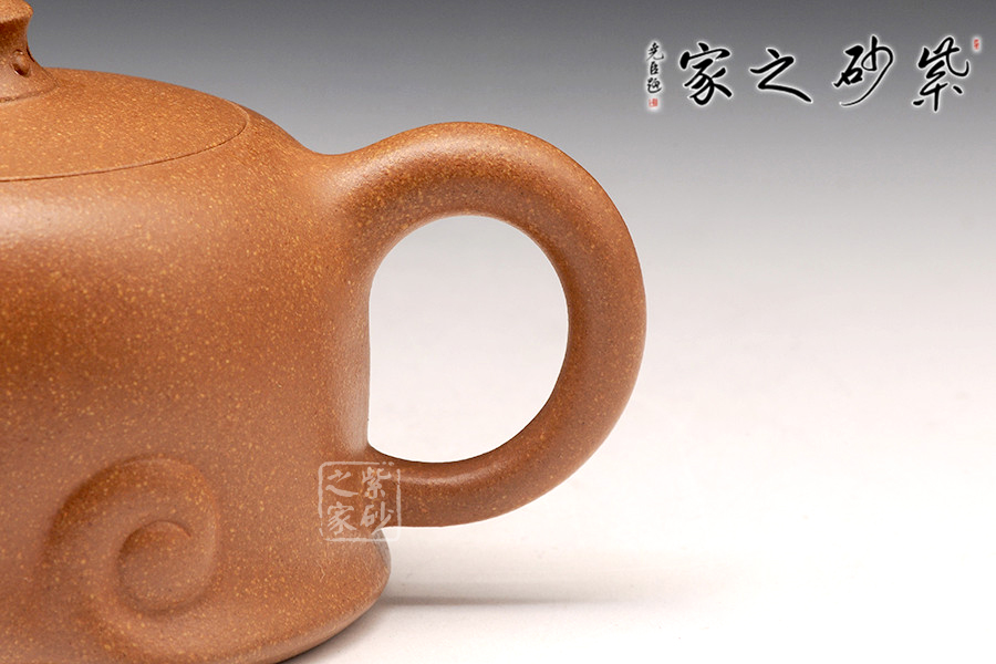 泥性:感甜嫩綿密,質(zhì)堅(jiān)而溫潤,呈近田黃色調(diào),為江蘇宜興趙莊山系朱泥礦~黃石黃之共生礦,經(jīng)挑揀練製而成,因含鐵量只達(dá)6%左右,致陶之后呈“金田黃色”。