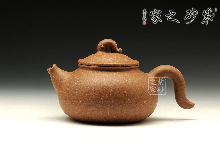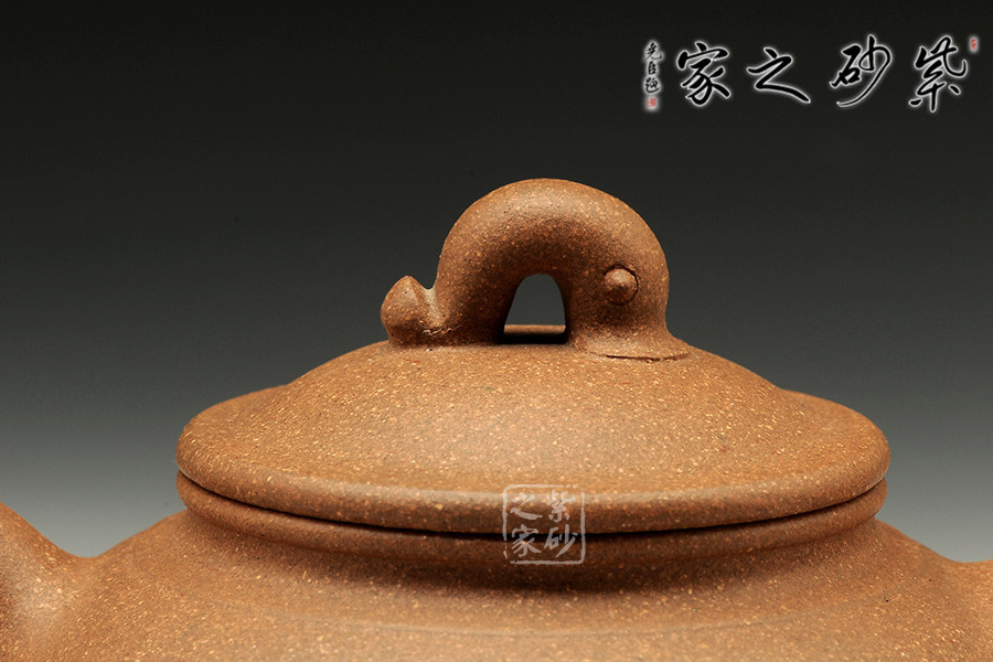 中青年優(yōu)秀陶藝家莊紅陽,精于手工制壺,注重作品的原創(chuàng)性,性價比高。該作品榮獲2013年第十五屆中國工藝美術大師精品博覽會金獎,段泥為料,肌理豐富,手感佳,因色澤相對較淺,適合沖泡綠茶類茶葉。造型融合了容天之型設計而來,壺身圓潤飽滿,雍容大度;嘴為魚嘴、把為魚尾,整器若一條靈動的魚。壓蓋之上一條小魚彎曲成鈕,妙趣橫生,與壺身呼應成趣。作品表達了魚躍龍門之意,有著極美好的祝愿。