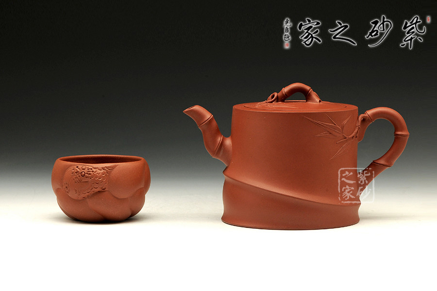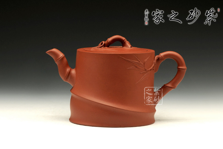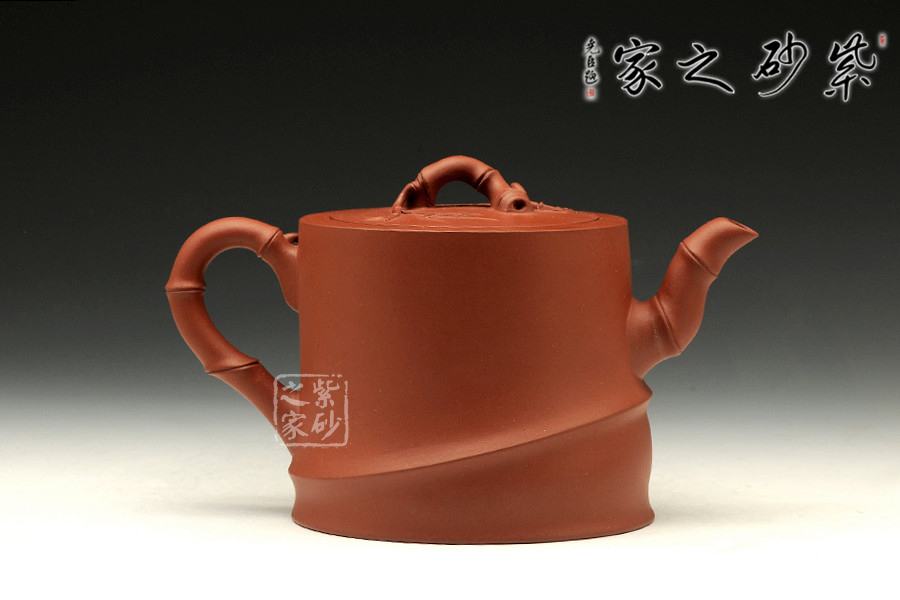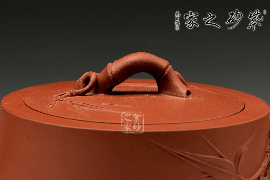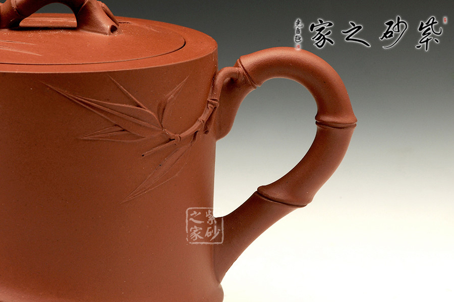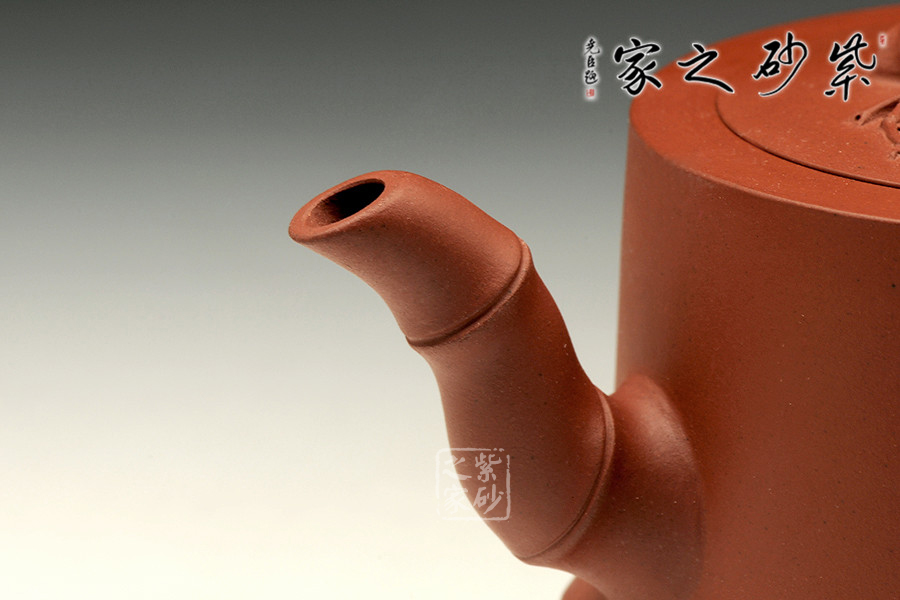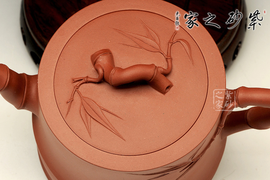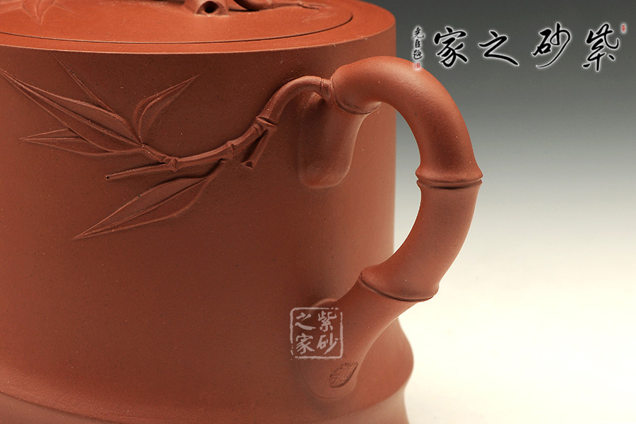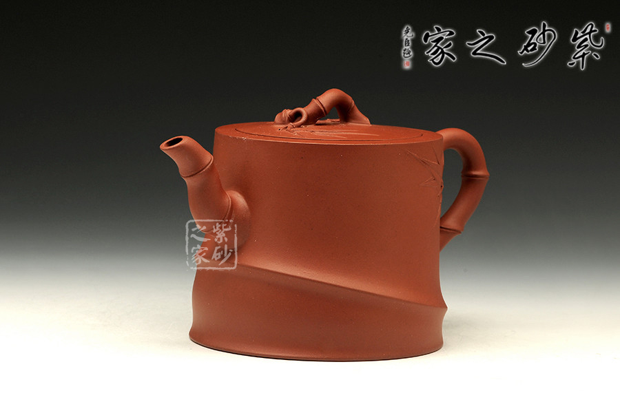 中青年優(yōu)秀陶藝家莊紅陽,精于手工制壺,注重作品的原創(chuàng)性,性價比高。作品榮獲2012年第四屆中國(天津)工藝美術(shù)精品博覽會金獎。以市面罕見的紅皮龍為料手工制作,泥料做一少一,成色古雅,適合沖泡烏龍茶類。整個壺身便是一節(jié)茁壯成長的大竹段,節(jié)竹特意設(shè)計成斜紋狀,給作品增添線條動感。壺鈕、壺把、壺嘴的造型均取自竹段,形態(tài)生動自然、清秀而挺拔。從壺把上方延伸出來的幾片竹葉增添了整把壺的生機,壺蓋上也貼塑竹葉,與壺身相呼應(yīng),契合主題,整件作品最大限度的表現(xiàn)出了竹的千姿百態(tài)。以此壺泡茶,在閑寂中體悟此壺虛靜、不張揚的內(nèi)在品質(zhì),也是文人雅士審美情趣的一種體現(xiàn)。
