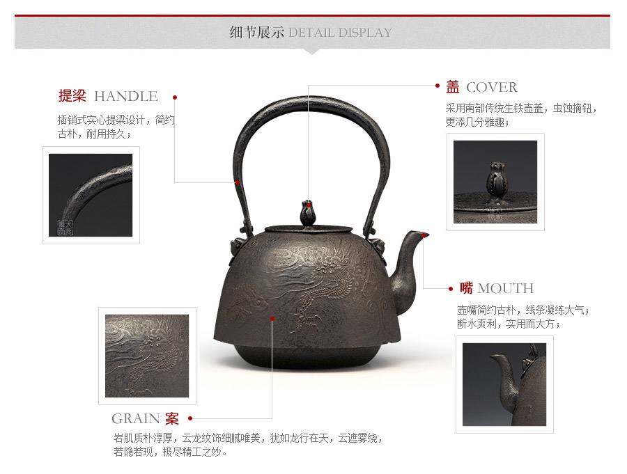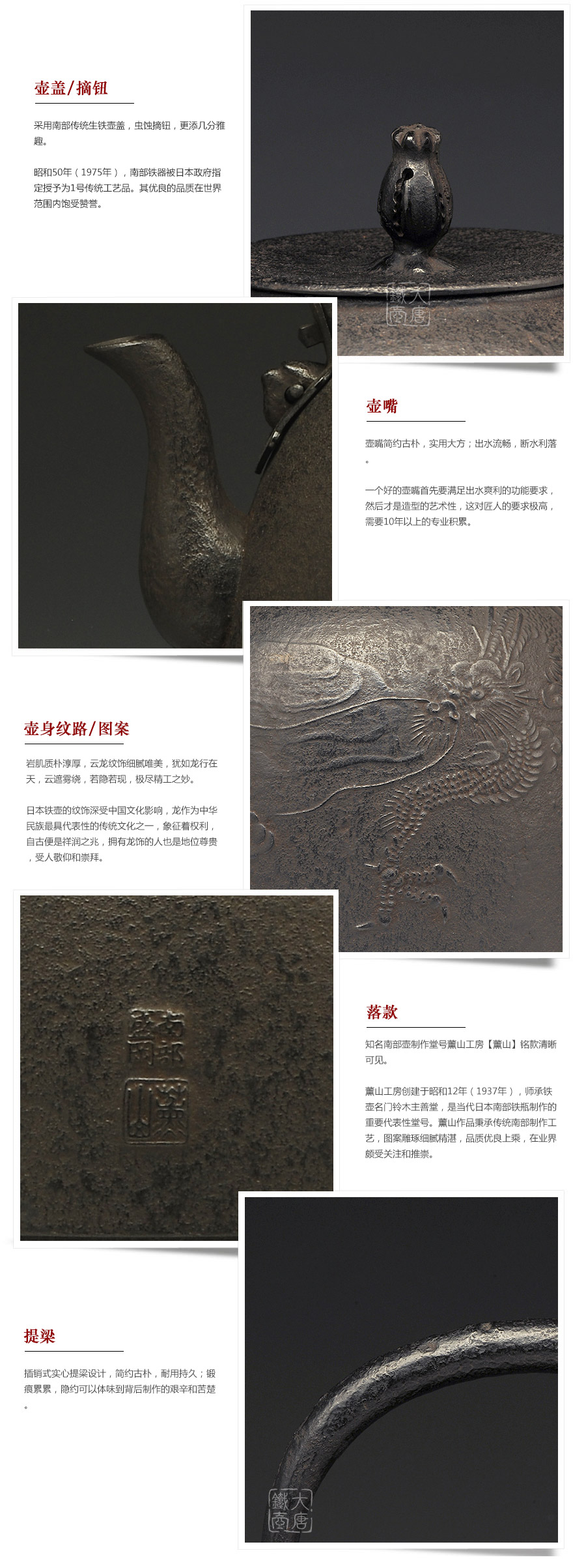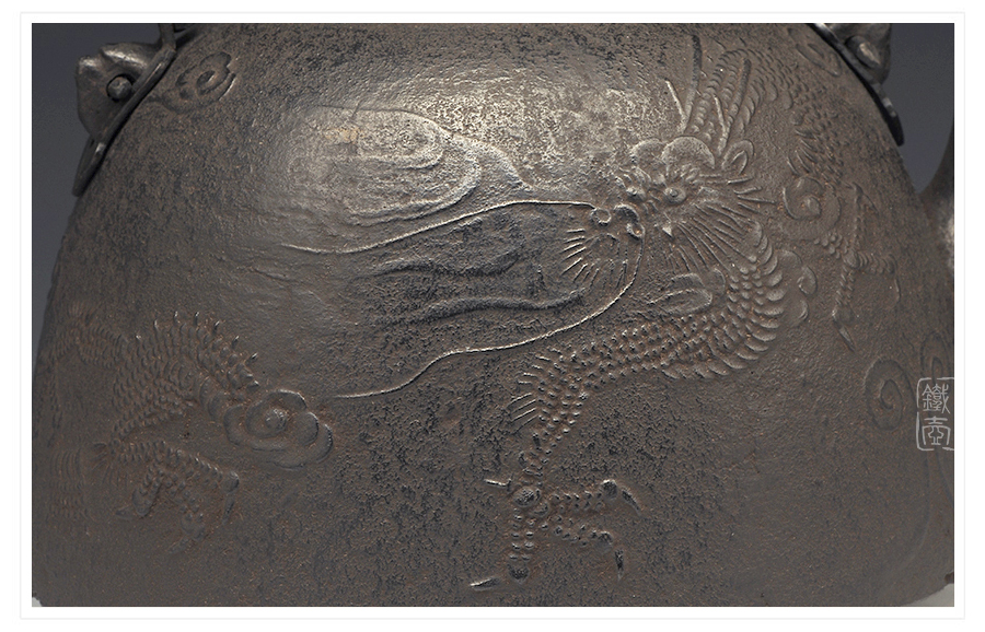 薰山工房匠心手作,傳統(tǒng)南部手工工藝,經(jīng)典南部型,云龍紋飾,剛勁洗練,威猛霸氣,一派王者風(fēng)范。