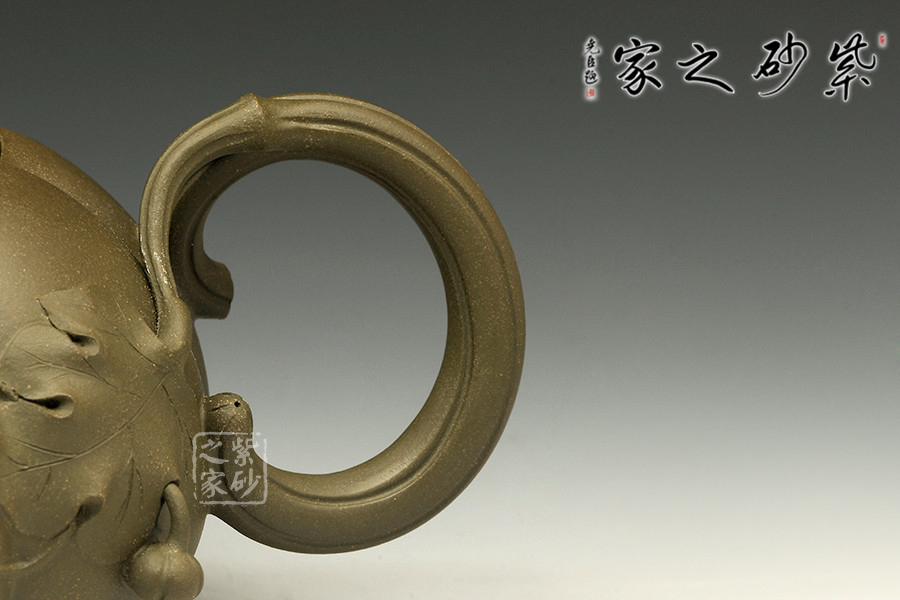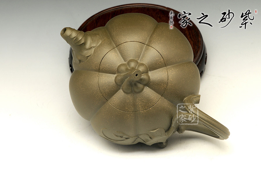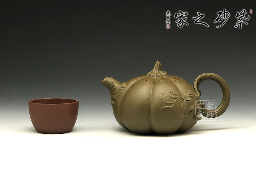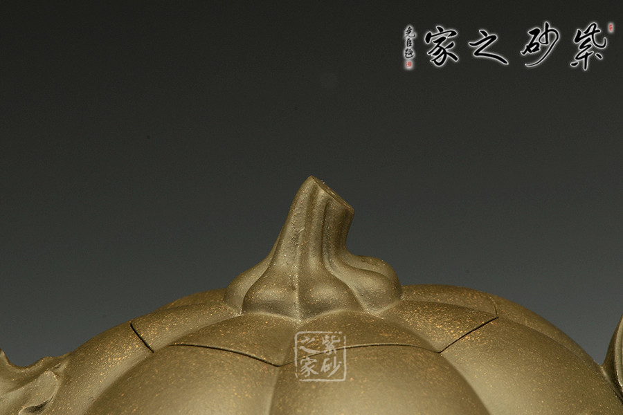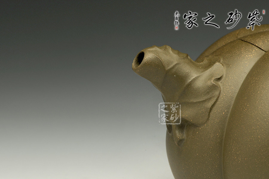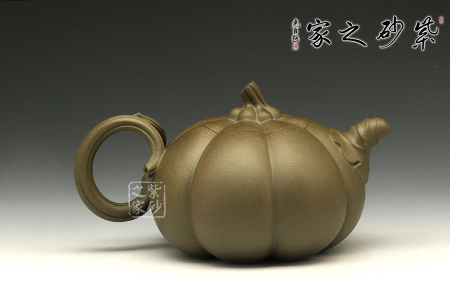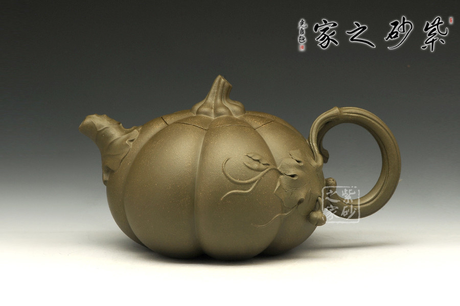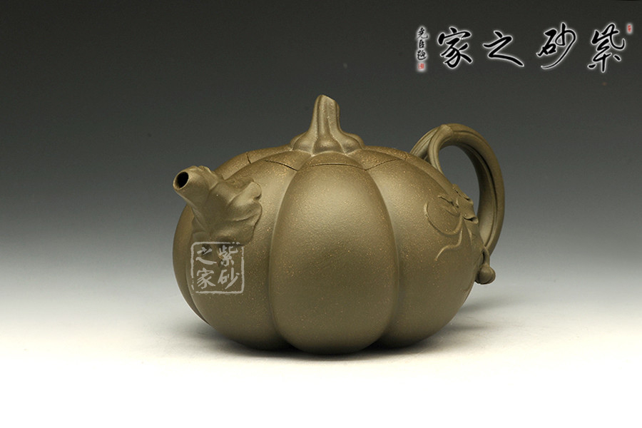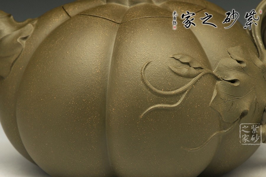 此南瓜壺以瓜形為壺體,南瓜藤為壺把,瓜柄為壺蓋,南瓜葉為壺嘴,整體就像一個(gè)真實(shí)的南瓜放在面前,形象逼真,構(gòu)思巧妙,取材自然,源于生活,又高于生活,清新淡雅,日常乃必備精品。