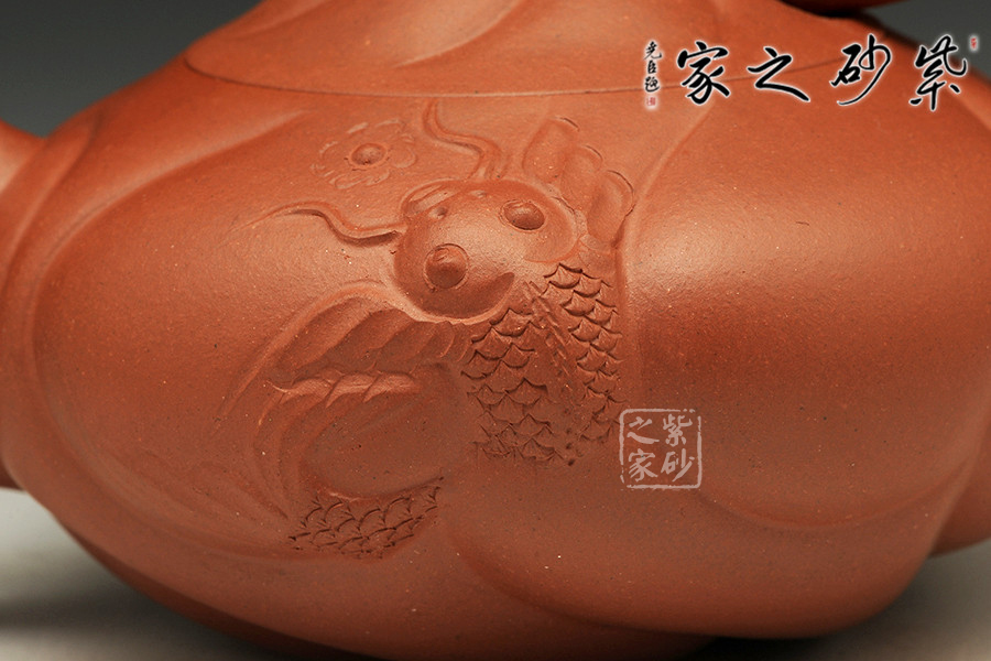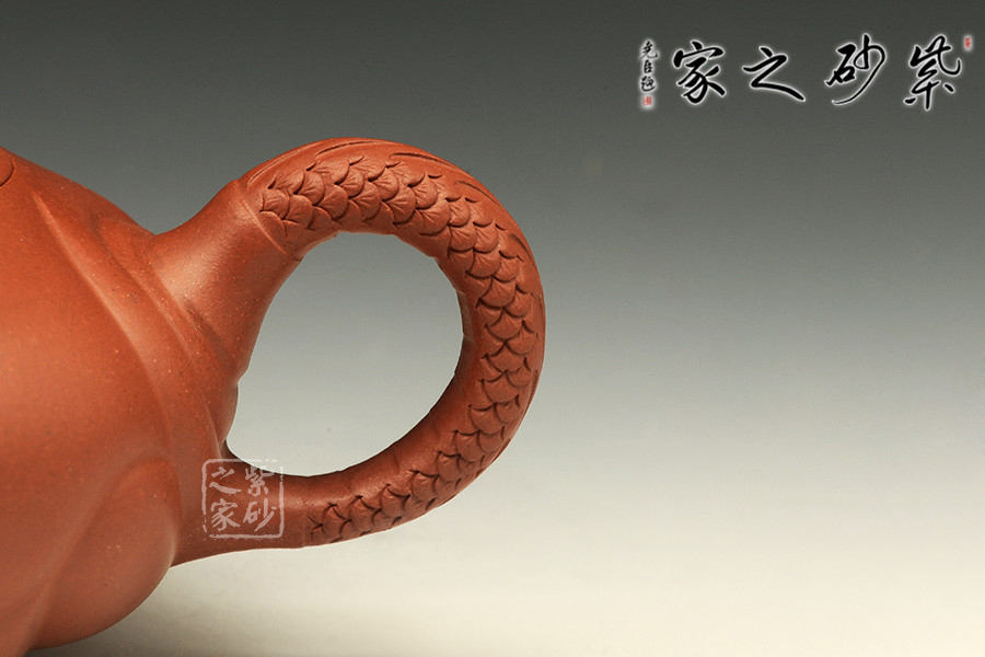 1964年出生于陶都宜興,大專畢業(yè)后從事紫砂藝術(shù)行業(yè),30多年的職業(yè)生涯中,一直以“腳踏實(shí)地、積極進(jìn)取、忠于壺藝、信于他人”作為工作作風(fēng),盡量地做好壺、做好人。也正是由于他一貫誠(chéng)懇、踏實(shí)的作風(fēng),使得他及他的作品頗受業(yè)內(nèi)人士的親睞。該壺設(shè)計(jì)新穎,龍魚之間,活靈活現(xiàn)。壺鈕為花式鈕,小巧精美。壺蓋別出心裁,龍頭從壺蓋探出,威武霸氣,與壺把相映成趣。壺嘴出水爽利,酣暢伶俐。整器別具神態(tài),氣度非凡,值得收藏!