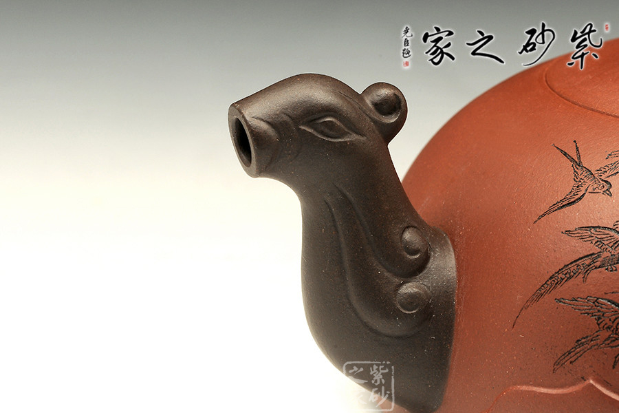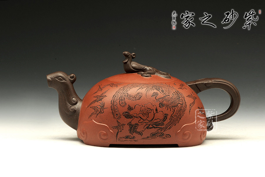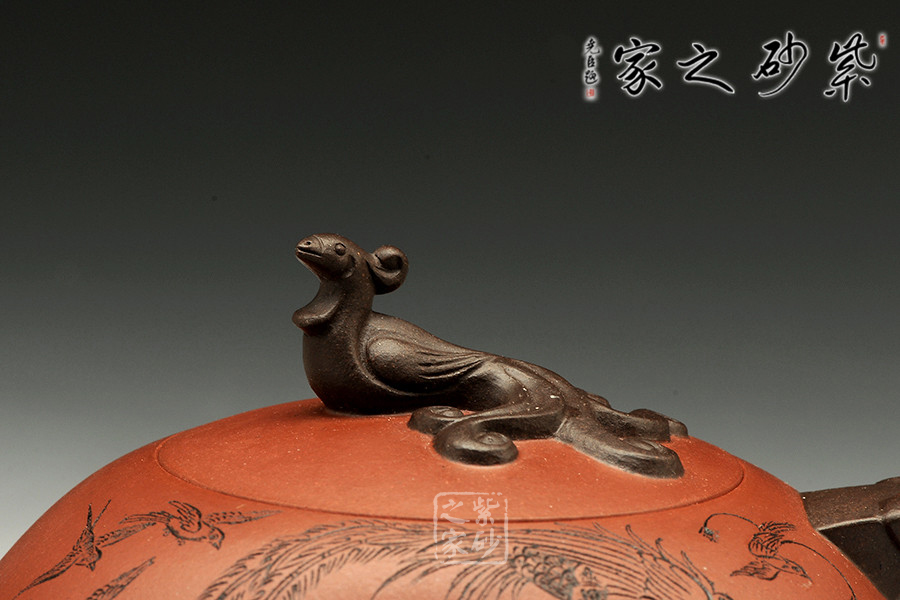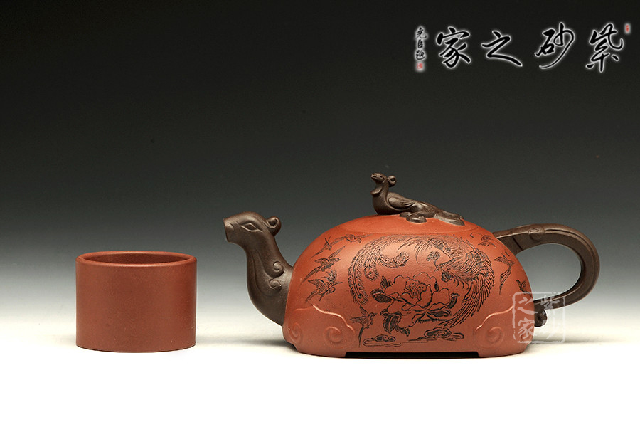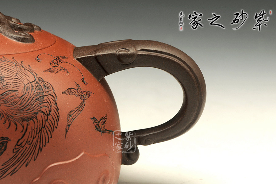 1956年8月生,江蘇省宜興市第十屆、第十一屆、第十二屆政協(xié)委員。1977年畢業(yè)于江蘇省陶瓷工業(yè)學(xué)校,后入中央工藝美術(shù)學(xué)院深造。擅于自制自銘,精于雙色泥料制壺,裝飾以金銀鑲嵌及山水、花鳥為最,作品屢獲大獎。該壺造型精美,整器宛若一只栩栩如生的鳳凰,壺鈕為獸鈕,設(shè)計新穎;截蓋設(shè)計,上下渾然一體;壺嘴與壺把相映成趣,于靜態(tài)之中賦予壺生氣,趣味十足,是兼具觀賞性與實用性的佳作。