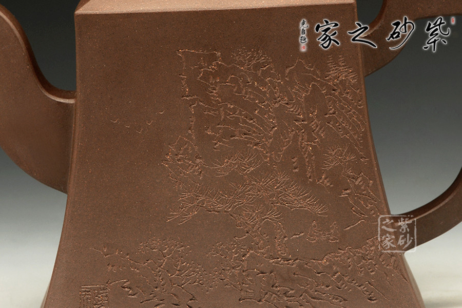 師從吳群祥(吳群祥青年時(shí)代曾作為全廠公認(rèn)的“優(yōu)秀青年”被選送至顧景舟處為徒),又得顧景舟指點(diǎn)。該壺精選原礦紫泥純手工打造,色澤質(zhì)樸內(nèi)斂,外形端莊沉穩(wěn),趣味悠然。壺身呈四方狀,有棱有角,彰顯剛勁之美,更顯壺之沉厚,十分值得推薦。