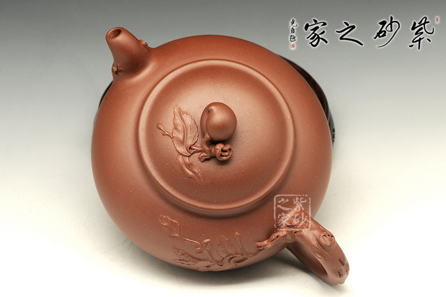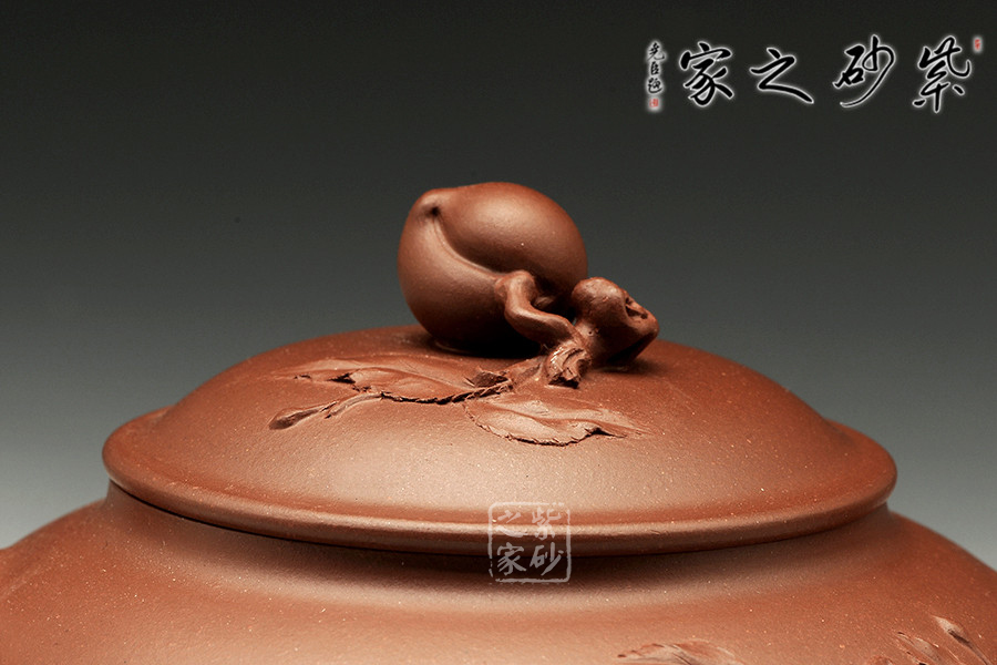 師從江蘇省工藝美術(shù)大師、研究員級(jí)高級(jí)工藝師徐元明。在方器、花器、筋紋器多有較深造詣。該壺精選原礦底槽青純手工打造,壺鈕為壽桃造型,飽滿圓潤,寓意壽比南山,幾片桃葉從壺把蔓延而出,增添生趣,壺蓋與壺口各自有線,壺蓋合上后上下又渾圓一體,而無繁復(fù)之虞,是兼具美觀與實(shí)用性的佳作 。