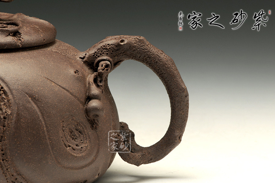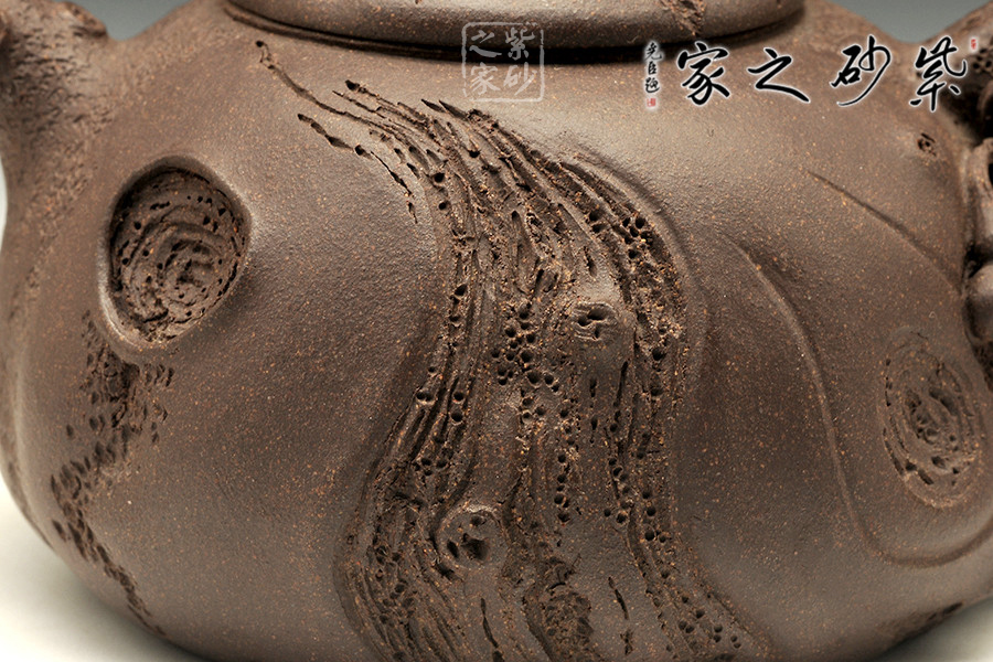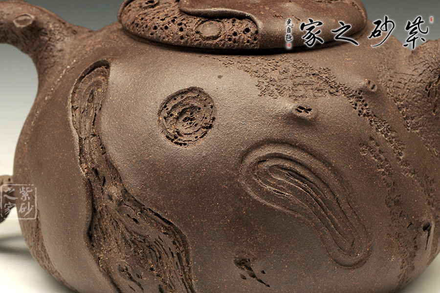 師從研究員級高工徐元明并得到其精心指點,博眾所長,練就一手過硬的純手工制壺技法。供春壺是一款歷史極為悠久,且極具效仿價值的壺型之一,是由一位名為供春的藝人所制作而成,其最大特點在于壺身有如老樹疙瘩,癭節(jié)滿身,不但突顯出其精工細(xì)作,亦展現(xiàn)出其深厚的制作功底。該壺色澤古樸而沉穩(wěn),壺身凸凹不平,有返璞歸真之意,壺蓋上靈芝壺鈕的設(shè)計,極富趣味,壺嘴出水爽利,酣暢淋漓,整器充滿韻味,值得推薦。