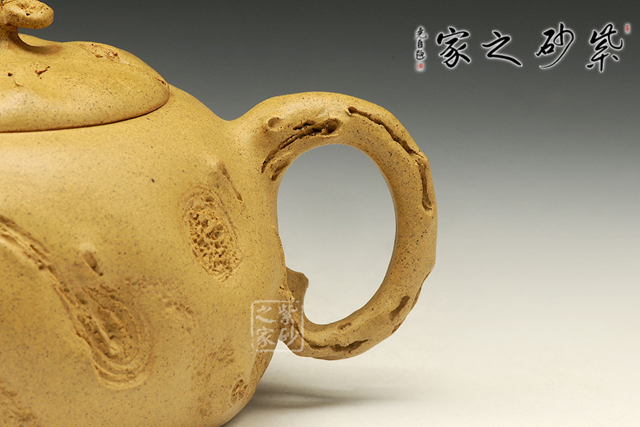 師從研究員級高工徐元明并得到其精心指點,博眾所長,練就一手過硬的純手工制壺技法。供春壺是一款歷史極為悠久,且極具效仿價值的壺型之一,是由一位名為供春的藝人所制作而成,其最大特點在于壺身有如老樹疙瘩,癭節(jié)滿身,不但突顯出其精工細(xì)作,亦展現(xiàn)出其深厚的制作功底。該壺精選原礦黃金段泥手工制作,色澤明亮,鮮明淡雅。壺身凸凹不平,有返璞歸真之意,壺蓋上靈芝壺鈕的設(shè)計,極富趣味,又與該主題極其契合。