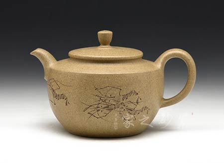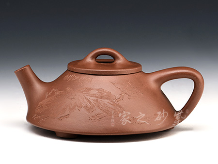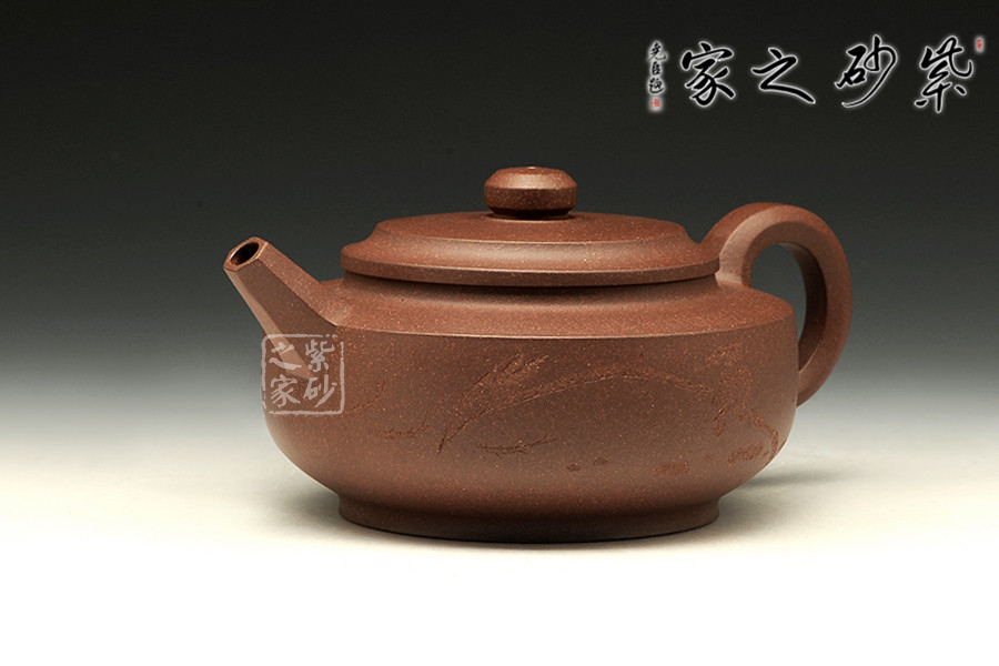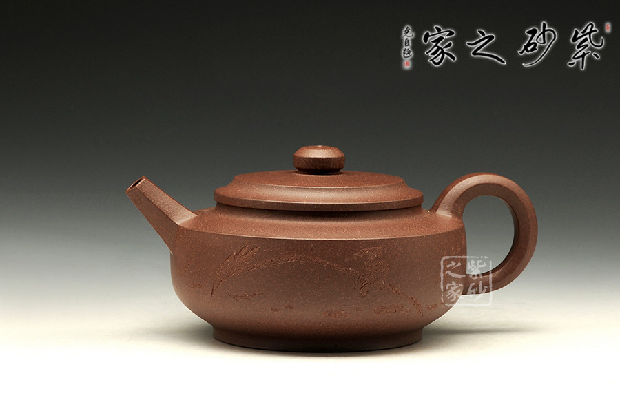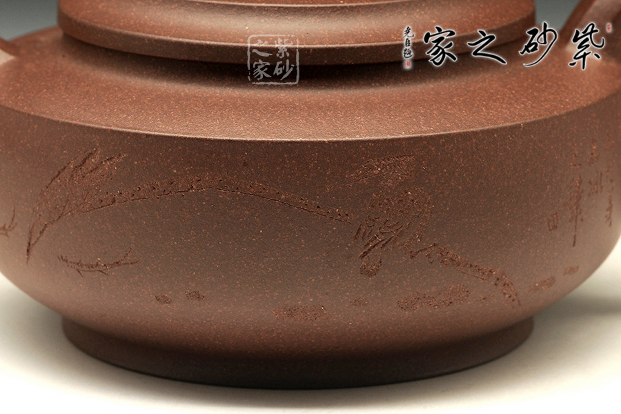 新生代優(yōu)秀陶藝家楊雅玫精品之作,壺身造型為扁圓,坡頸平口。壺流短直、把圓環(huán)略方,鈕圓柱狀,壺底為圓環(huán)。腹身亦刻繪清趣圖,靈動(dòng)自然,詩(shī)情畫意盡顯。此壺線條流暢有力,圓潤(rùn)而不失剛勁,遒勁中出媚姿,縱橫中見(jiàn)遺韻,肅然絕俗。