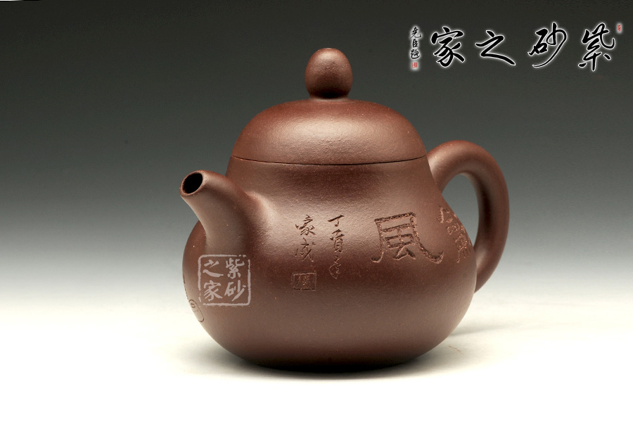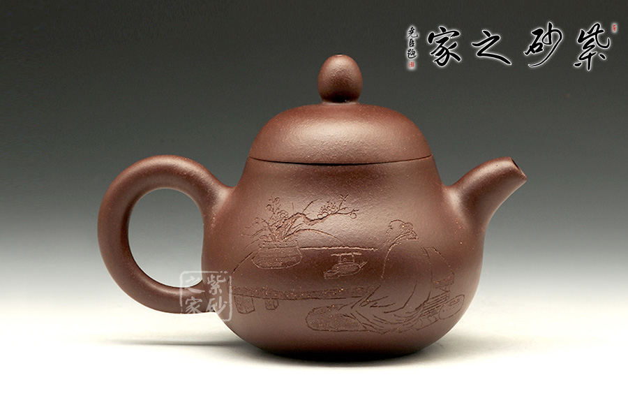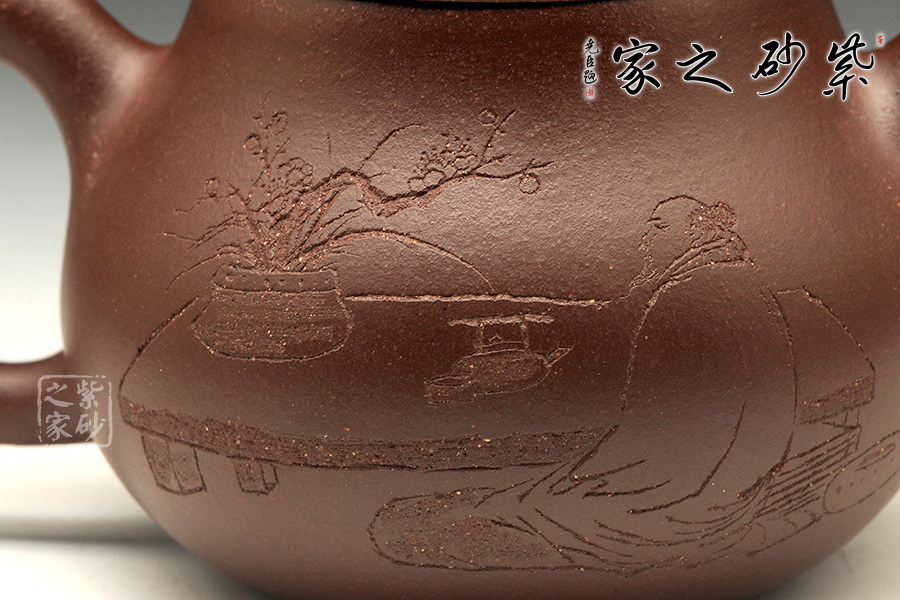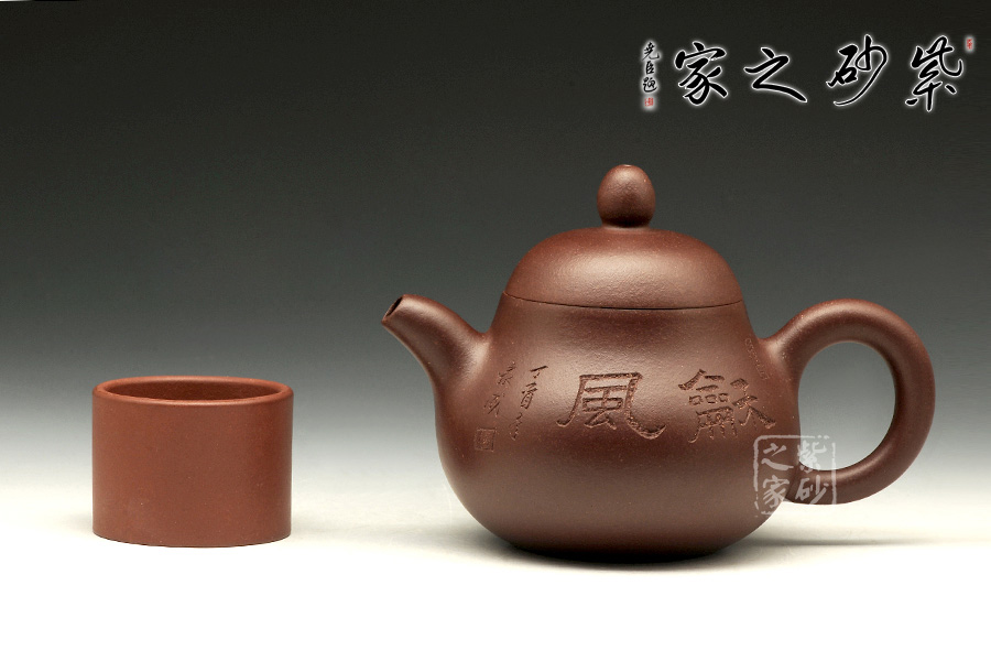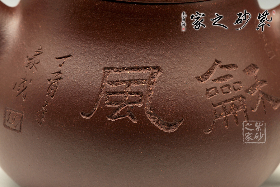 與國家級(jí)大師譚泉海、徐安碧多年合作。所制紫砂壺壺嘴內(nèi)部均有其親筆簽名。擅長制作圓器, 作品簡約而老練、精工華麗,耐人尋味,深得海內(nèi)外同道及紫砂壺收藏家的愛戴及青睞。該壺精選原礦底槽青純手工制作而成,整器圓潤而簡練,截蓋設(shè)計(jì)使得上下宛若一體,線條流暢優(yōu)美,壺身正面刻有“稐風(fēng)”,壺身背面為文人品茶圖,呈現(xiàn)出古典的美感。