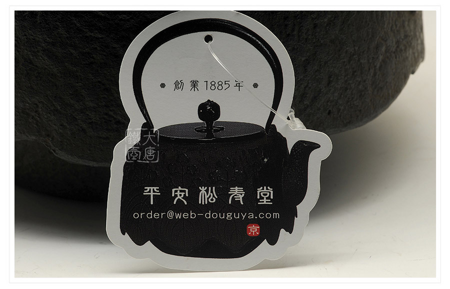 平安松壽堂(即松壽堂、西村松壽堂)是京都鐵瓶(也叫關(guān)西鐵壺)的典型代表,明治18年(1885年)由初代西村勝在京都寺町創(chuàng)建。平安松壽堂制作的鐵壺采用銅質(zhì)壺蓋,壺底內(nèi)側(cè)底部有板狀突起的“鳴金”,壺身或者提梁伴有金銀貴金屬鑲嵌的各式圖案或花紋,與京都寺町附近的龍文堂、雨宮金壽堂、云色堂等共同形成了獨(dú)特的京都鑲嵌特色。