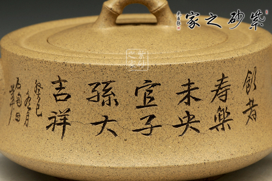 A面: 裝飾: 詩詞 裝飾者:石匋 裝飾內(nèi)容: 飲者壽,樂未央,宜子孫大吉祥。