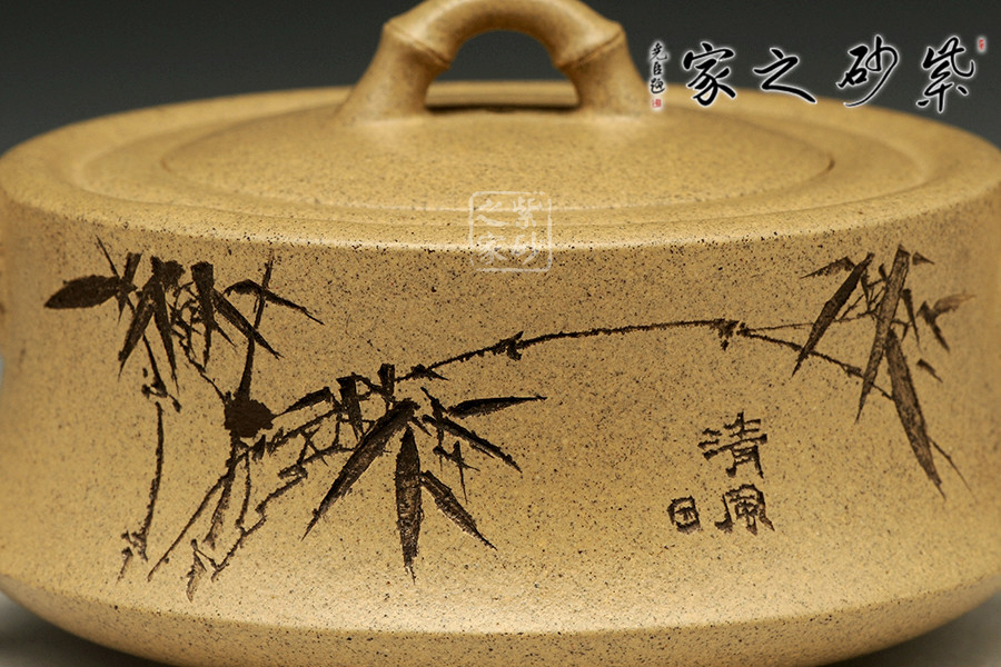 此壺傳承經(jīng)典,端莊雅致,不失渾厚樸實,質(zhì)拙中顯高意,值得擁有。鈕嘴把竹節(jié)造型,直流嘴兩節(jié)竹節(jié)裝飾而成,弧鈕按在在略微鼓起的壺蓋之上,耳形提把為三節(jié)竹節(jié)裝飾。嵌蓋與整壺完美融合,壺腹圓滑內(nèi)陷,似竹節(jié)造型,整壺呼應(yīng)。原礦段泥手工制作,色澤明亮,鮮明淡雅,整款壺竹韻清疏。