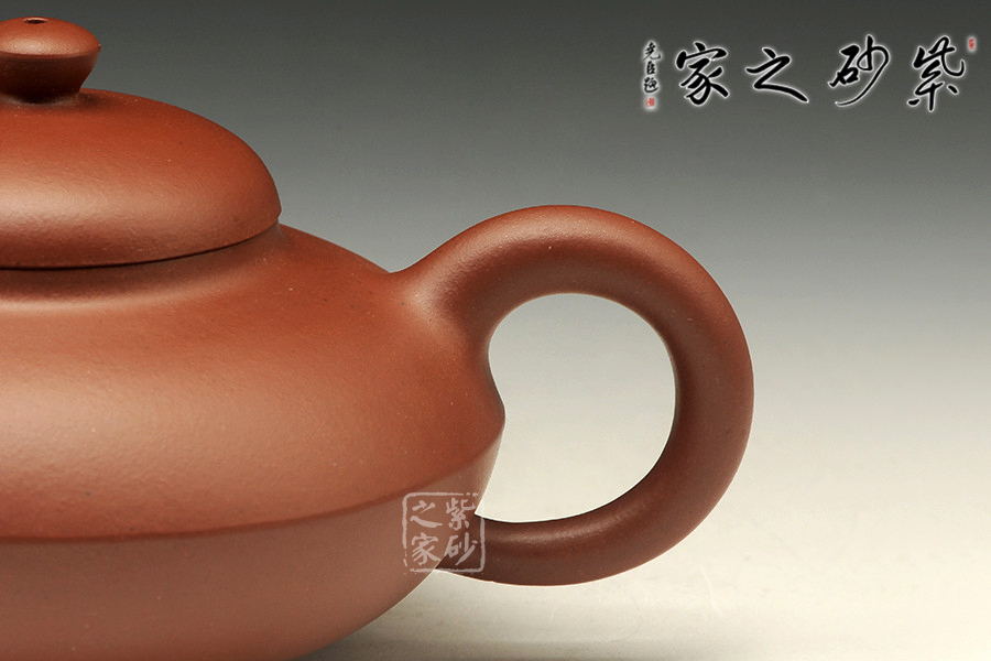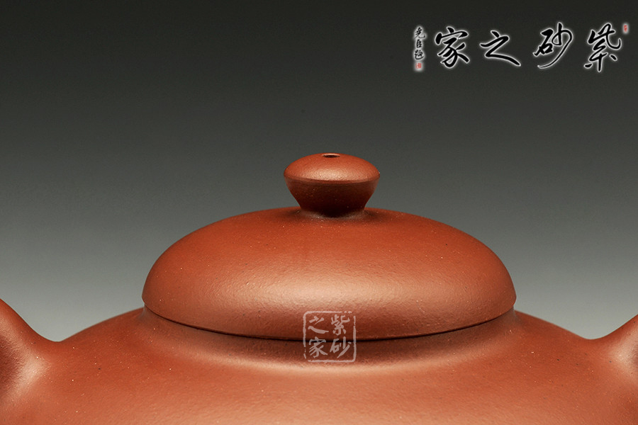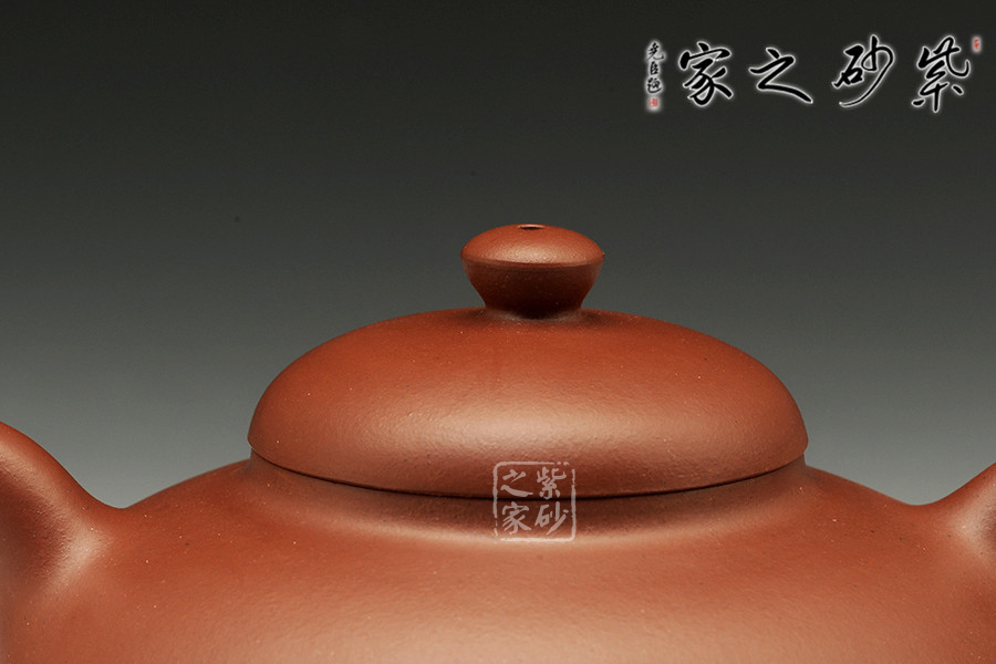 其作品以傳統(tǒng)造型為主,輔以自創(chuàng)新品,極具濃厚中國文化底蘊(yùn),端莊大方,氣韻生動。該壺壺身上下兩半對接而成,中間由棱線變化為弧線,并以腰線飾之,在視覺層次感上韻味不俗,給人一個(gè)全新的視野。圓鈕、圓蓋、圓身筒,三者錯(cuò)落有致,截蓋與壺身一體,構(gòu)成完整的形態(tài),給人一種氣韻上的流暢之感。嚴(yán)絲合縫,也正是泡茶所需,因此實(shí)用性與觀賞性堪稱完美搭配,值得藏用!