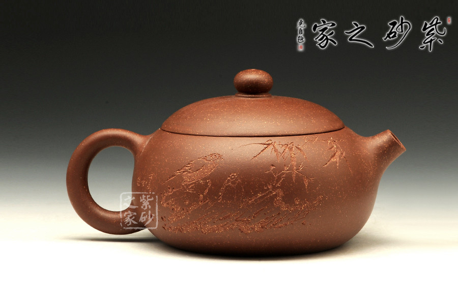 特點:塊狀中有青綠色的"雞眼"、"貓眼"、色呈偏紫泛青,細(xì)而純正, 十分稀少.燒成的壺呈現(xiàn) 紅豬肝色,燒成顏色具體要看礦料的成分構(gòu)成和燒成溫度。