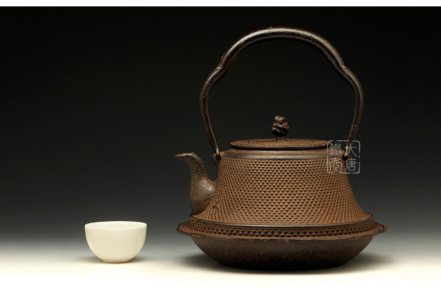 長文堂三代目長谷川光昭作品,富士造型端莊優(yōu)雅,雋永飄逸,壺身霰點飽滿,繩結(jié)摘鈕精雕雅致,妙趣橫生。