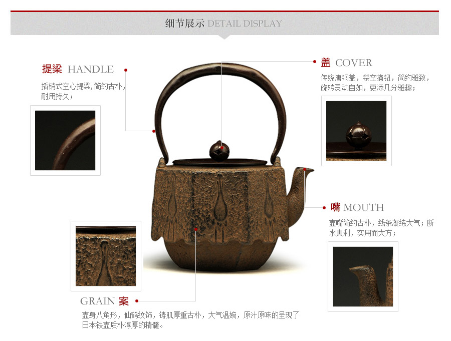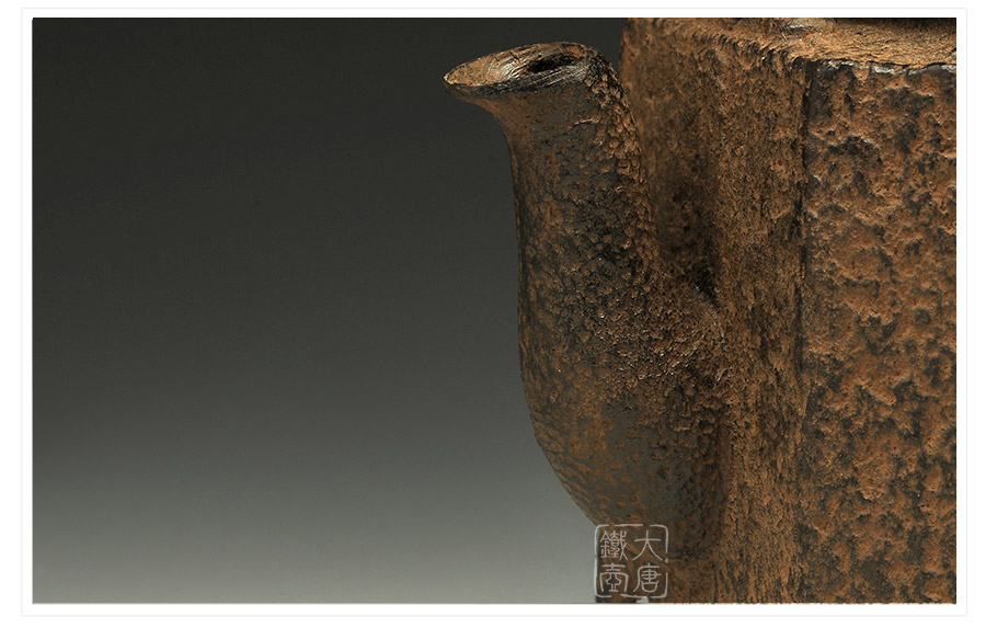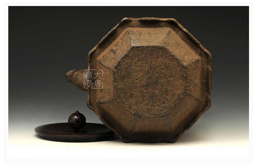 平安松壽堂作品,純手工制作,壺身八角形,仙鶴紋飾,鑄肌厚重古樸,大氣溫婉,原汁原味的呈現(xiàn)了南部鐵器質(zhì)樸淳厚的精髓。