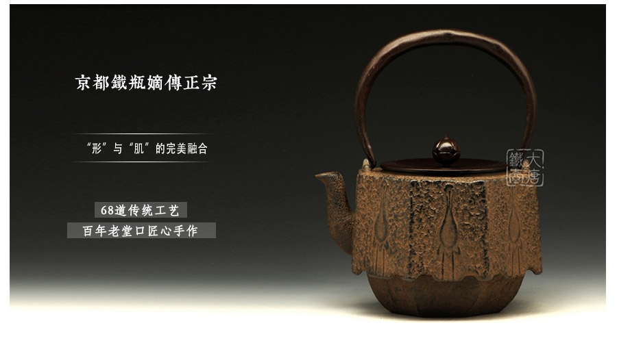 現(xiàn)在平安松壽堂已傳為4代目,致力于京都鐵瓶的制作和表面鑲嵌工藝的研究。