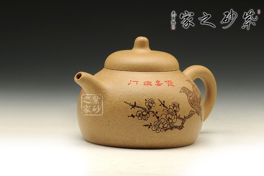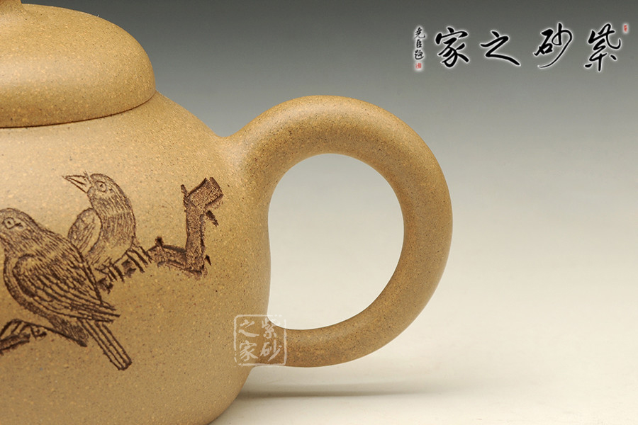 泥性:感甜嫩綿密,質堅而溫潤,呈近田黃色調,為江蘇宜興趙莊山系朱泥礦~黃石黃之共生礦,經(jīng)挑揀練製而成,因含鐵量只達6%左右,致陶之后呈“金田黃色”。