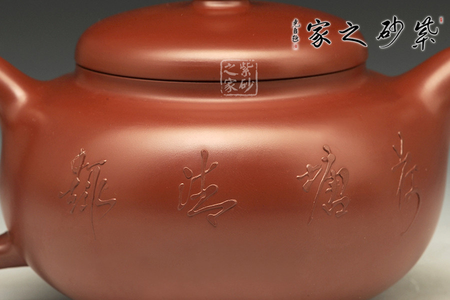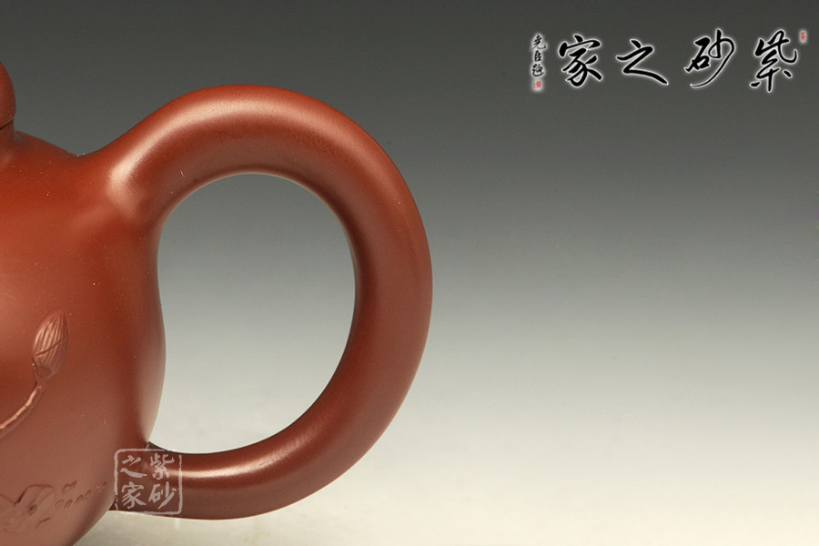 特點:質(zhì)感綿密、緊實細(xì)緻,持之扎實沉重、紅潤豔麗,泥中極品,無以倫比;泥胚含少許原礦顆粒,沖淋熱水后色變極大,呈紅中帶紫,養(yǎng)壺易現(xiàn)“包漿”之美。