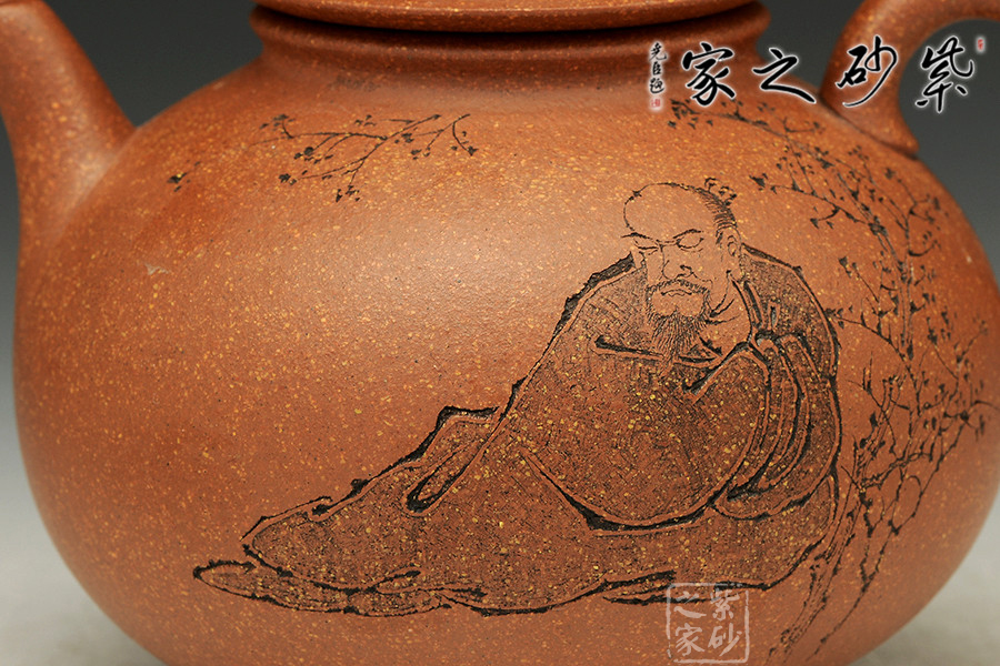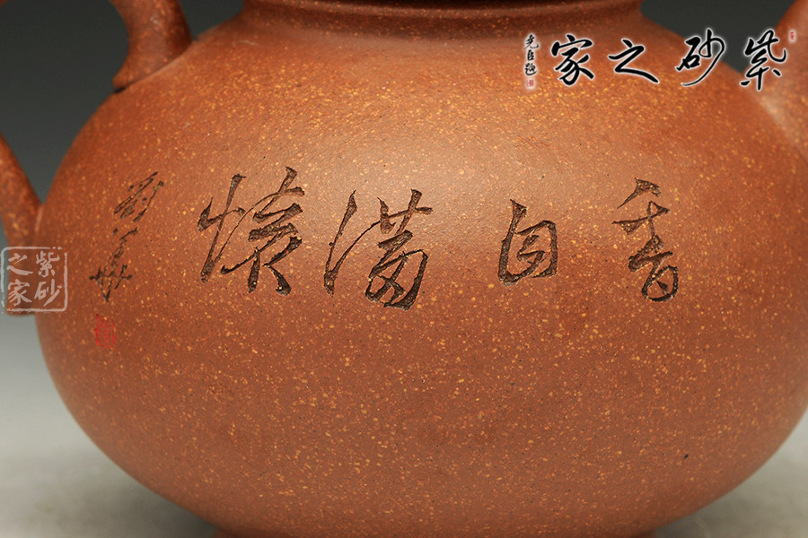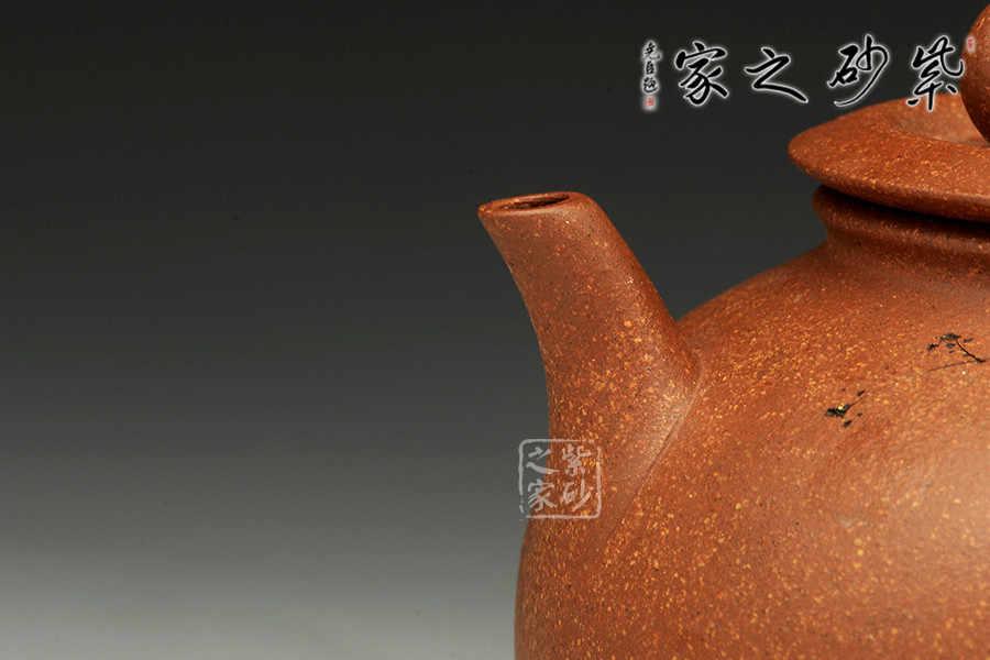 特點:原礦因含緞泥、紅泥、紫泥等諸多共生礦,陶之后,于深沉之“橙紅色”底上,滿佈五彩斑斕的粗細(xì)、深淺之紅、黃星斑點。