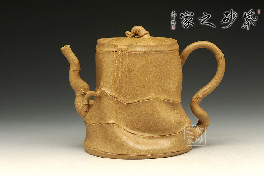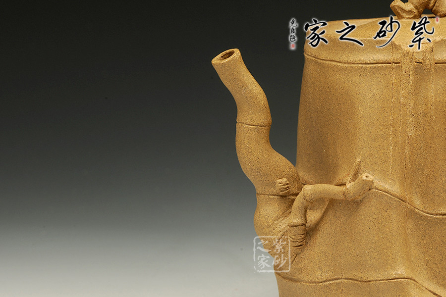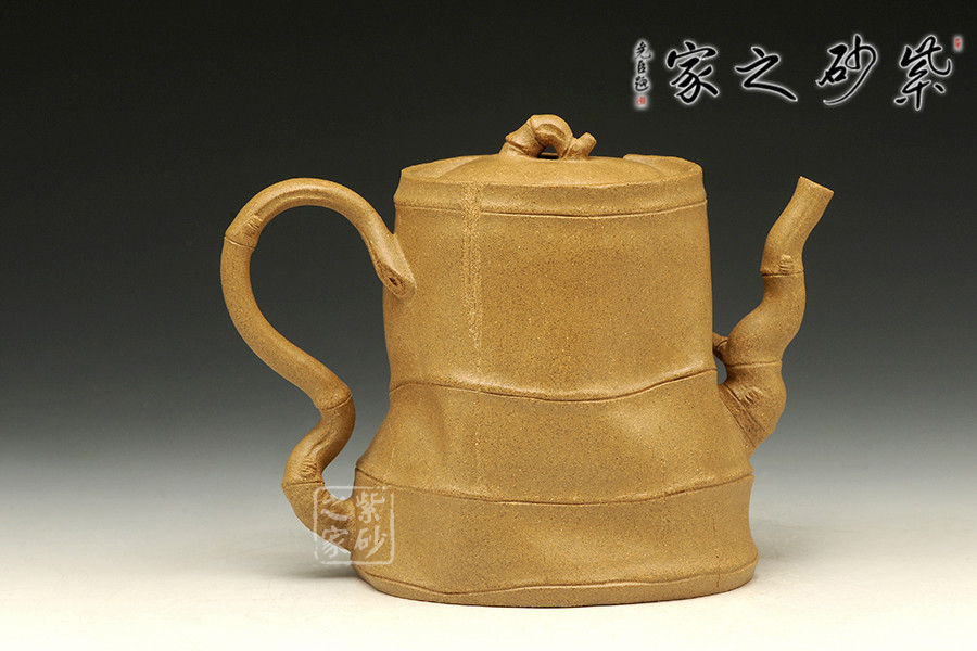 此壺精選原礦段泥手工制作而成,色澤明亮,鮮明淡雅。以竹為器形在紫砂壺中很常見,但是這次周勇生老師一改傳統(tǒng)竹器形給人的印象,壺身凹凸不平,壺嘴、壺把彎曲,在眾多紫砂壺中,此壺可以令人眼前一亮。獨(dú)特的器形,優(yōu)質(zhì)的泥料,讓此壺倍受壺友們的喜愛。