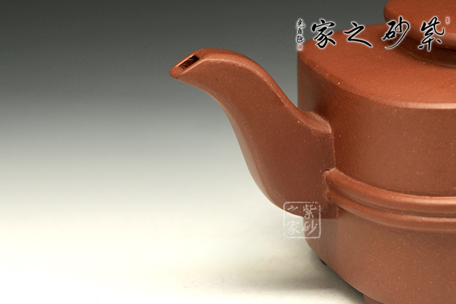 該壺古樸內(nèi)斂,實用性佳。制作耗費時間心力,獨具設計創(chuàng)意,極具收藏意義。壺體輪廓明朗,線條流暢自然,于拙樸中見纖巧,器形簡約,凝練線條完美展示造型魅力,外觀精致大氣,腰腹雙圈紋增添立體感。壺嘴與壺把線條四方,彎嘴自然,出水爽利;端把輪廓四方,與壺型呼應。平蓋平整,吻合嚴密,壺鈕造型飄逸,增添了壺的靈動感,妙不可言,精致而美觀。
